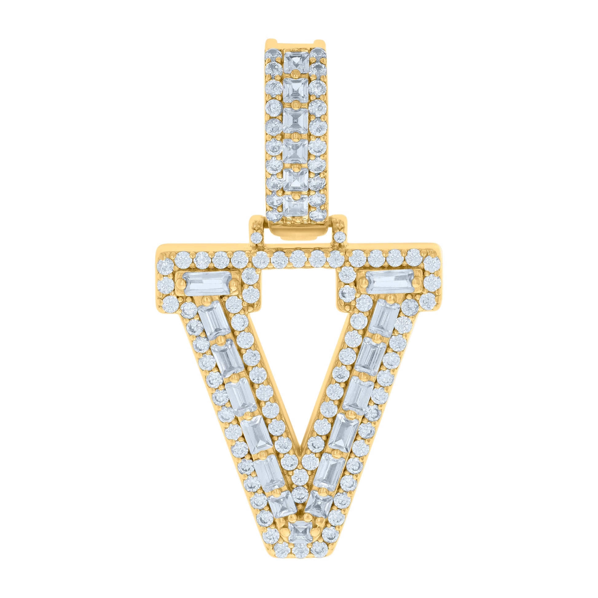 925 Sterling Silver Yellow-tone Unisex Cubic-Zirconia Initial V Alphabet Charm Pendant