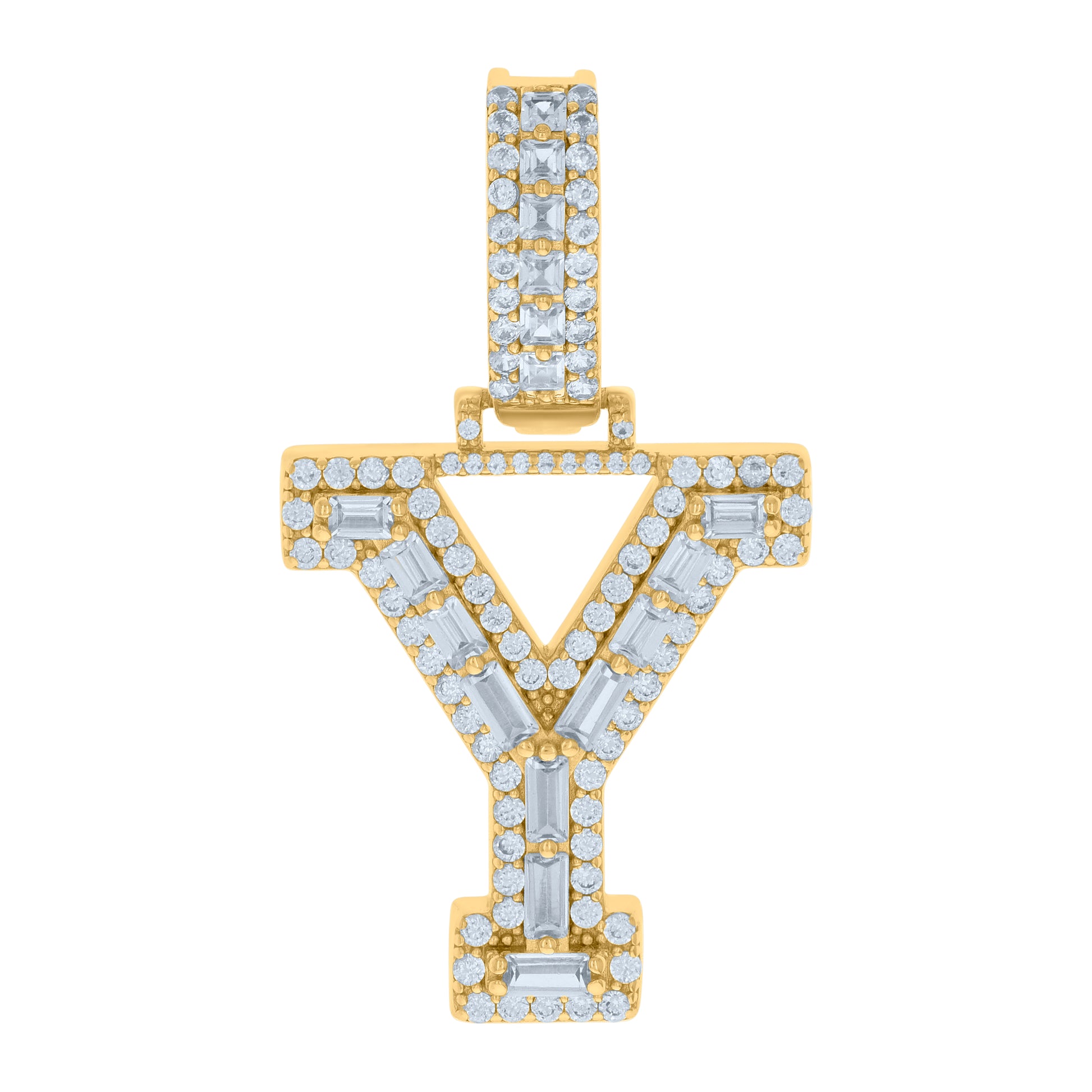 925 Sterling Silver Yellow-tone Unisex Cubic-Zirconia Initial Y Alphabet Charm Pendant