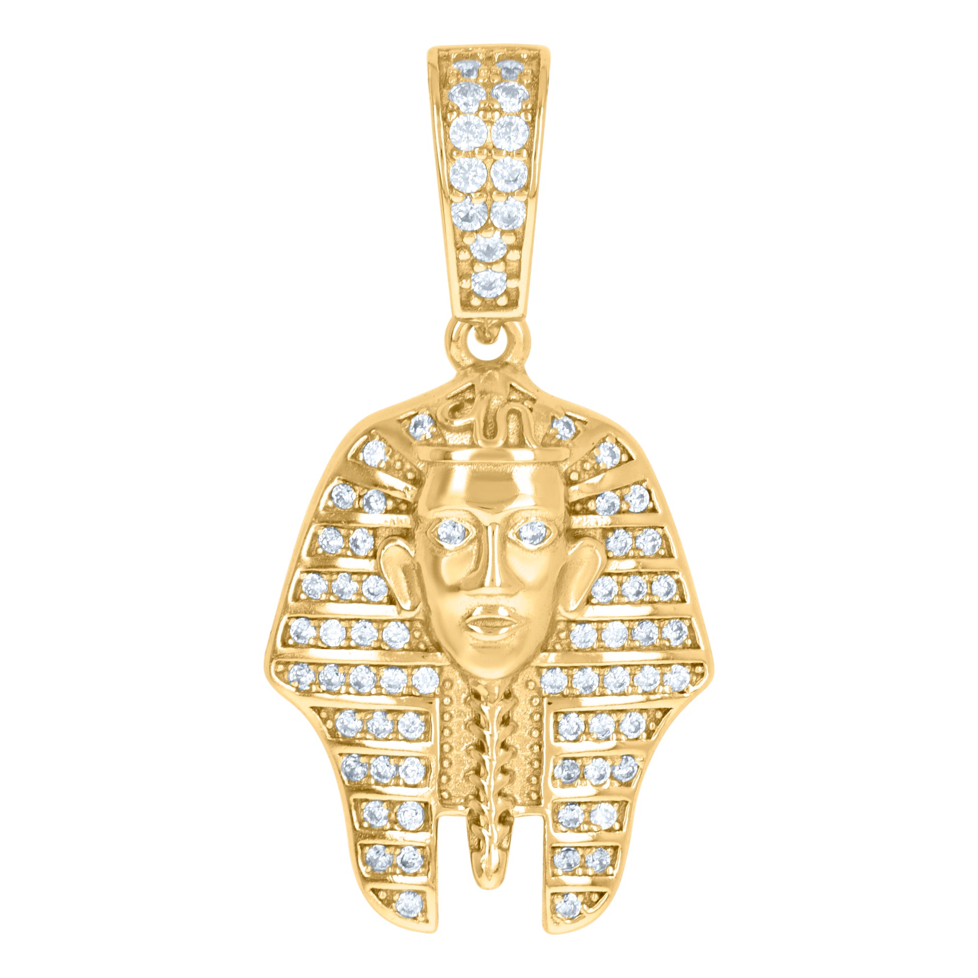 925 Sterling Silver Yellow-Tone Mens Cubic-Zirconia Egyptian Pharaoh Fashion Charm Pendant