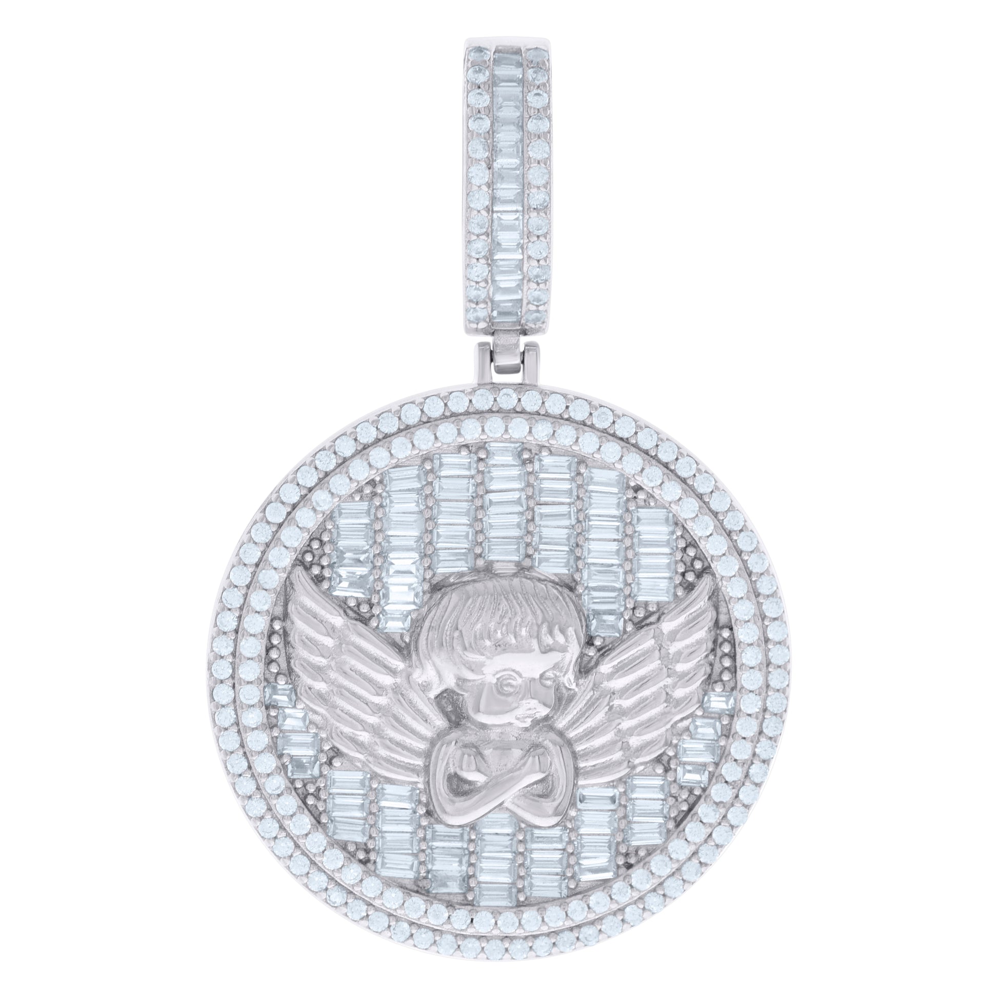 925 Sterling Silver Mens Baguette Round Cubic-Zirconia Medallion Angle Charm Pendant