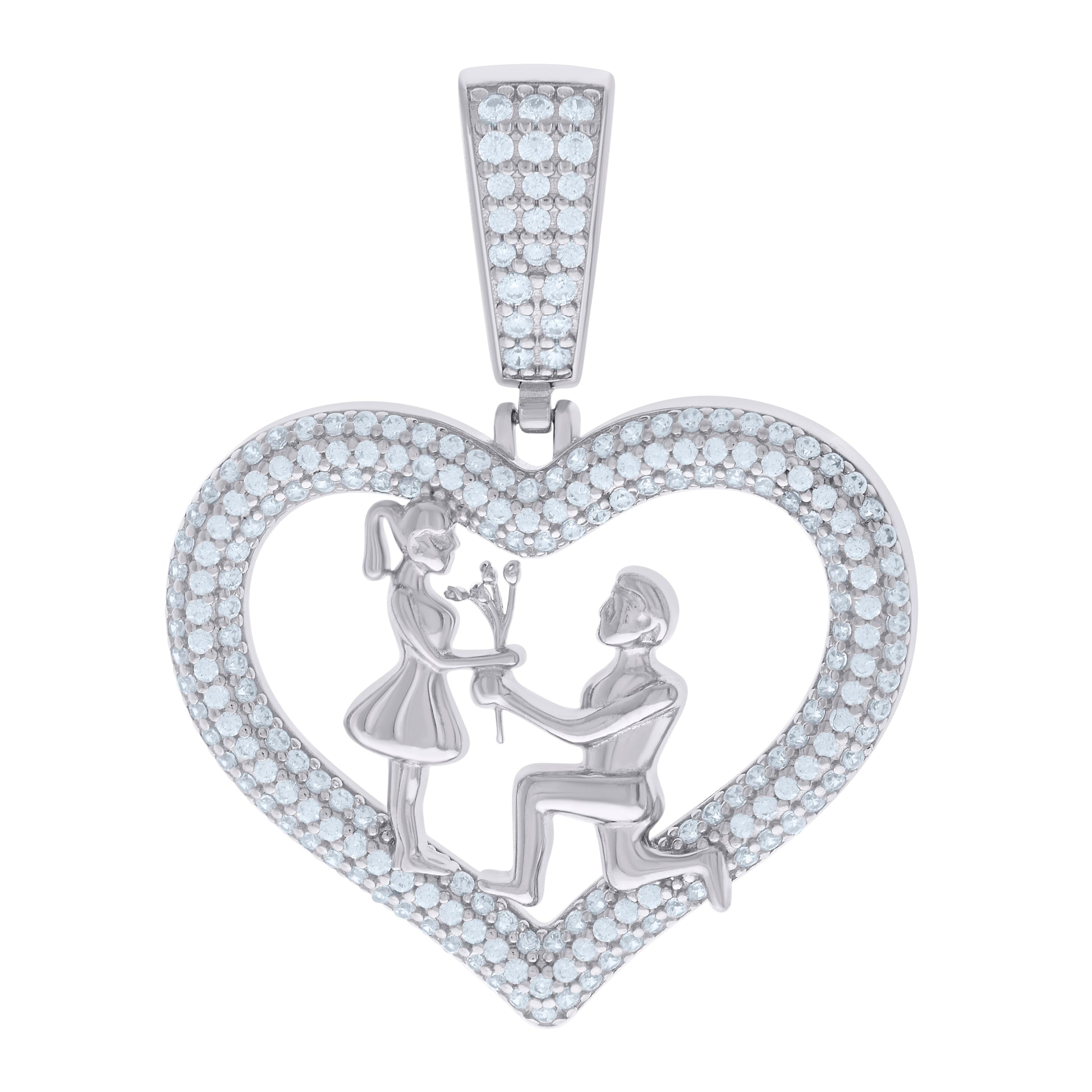 925 Sterling Silver Womens Cubic-Zirconia Couple Heart Charm Pendant