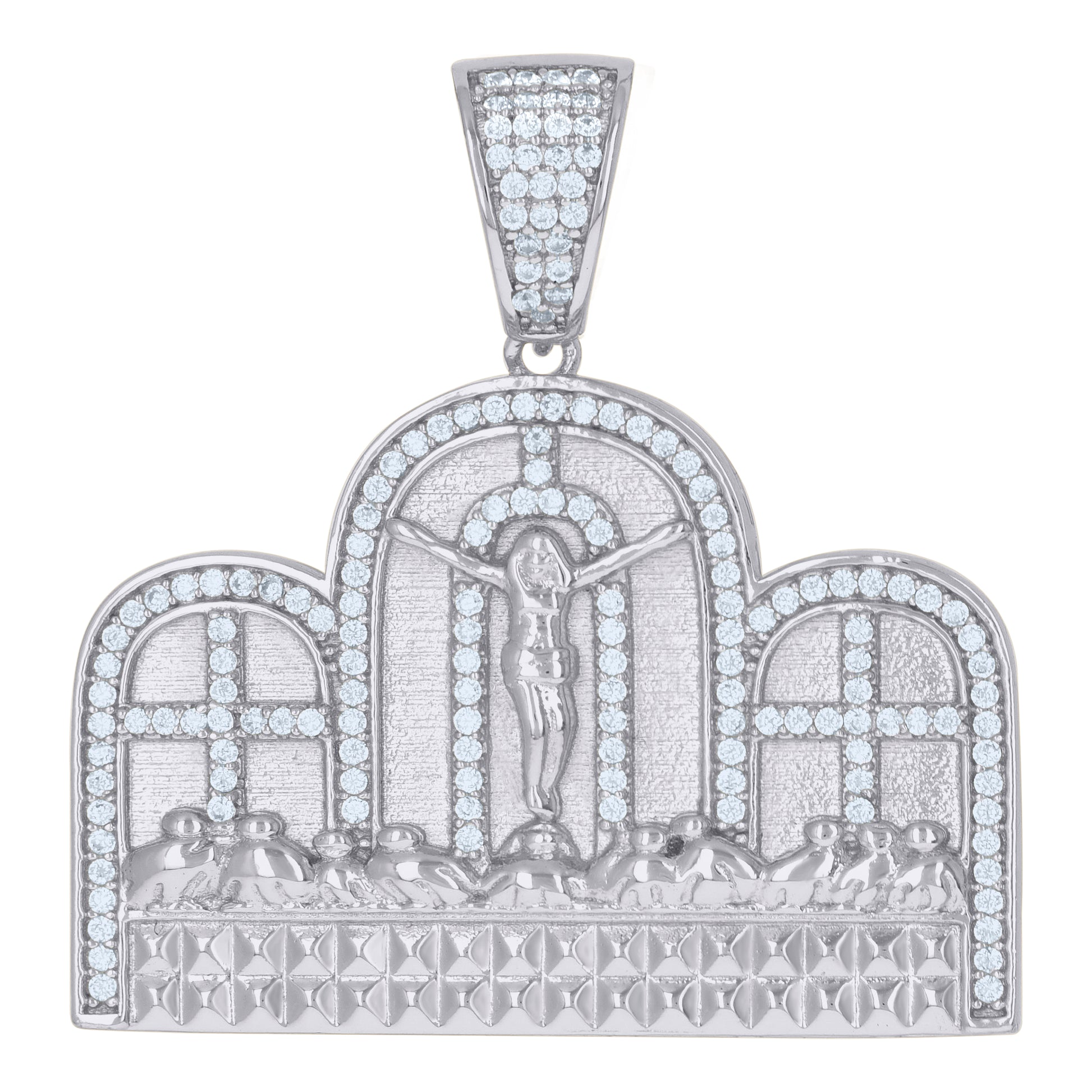 925 Sterling Silver Mens Cubic-Zirconia Crucifix Last Supper Religious Charm Pendant