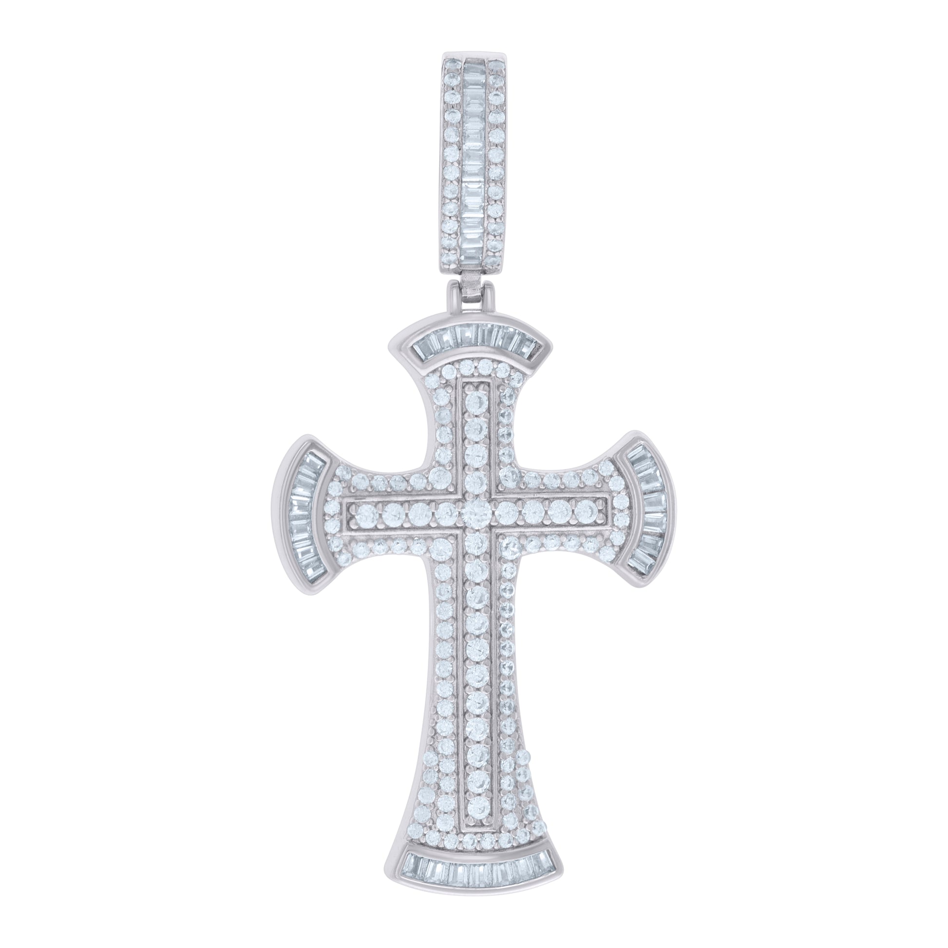 925 Sterling Silver Mens Baguette Round Cubic-Zirconia Cross Religious Charm Pendant