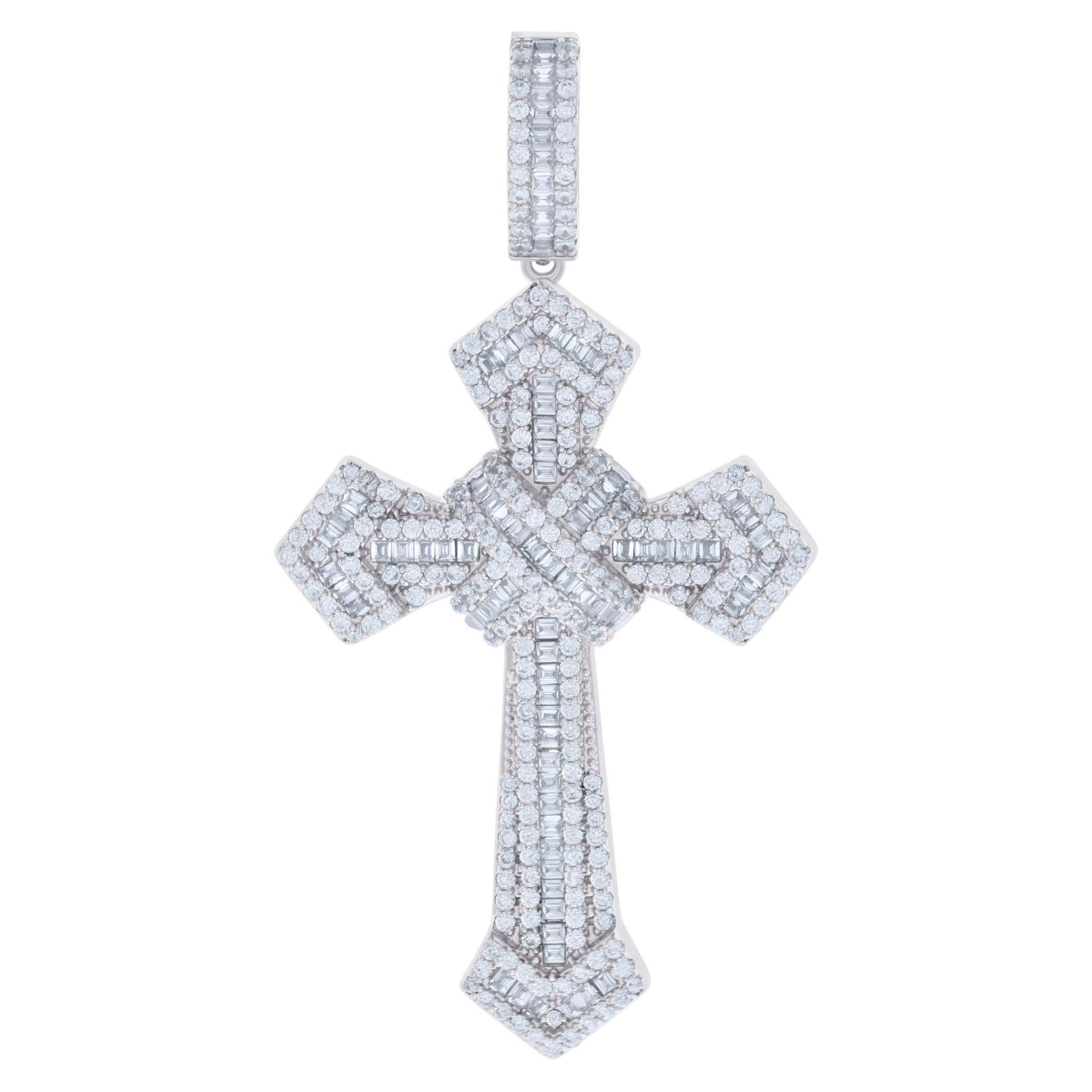 925 Sterling Silver Mens Baguette Round Cubic-Zirconia Cross Religious Charm Pendant