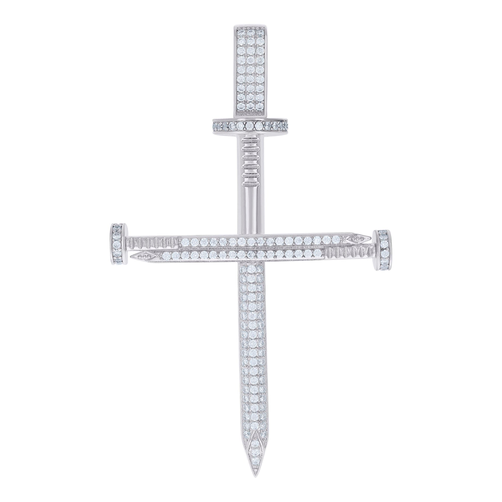 925 Sterling Silver Mens Round Cubic-Zirconia Nail Cross Religious Charm Pendant