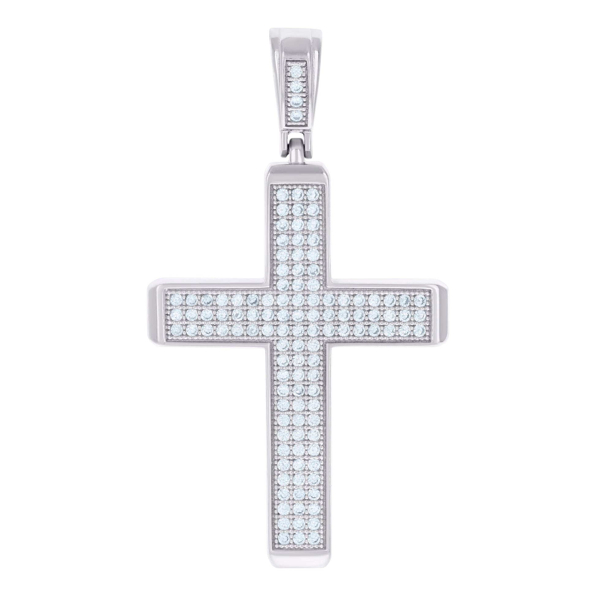 925 Sterling Silver Mens Round Cubic-Zirconia Cross Religious Charm Pendant