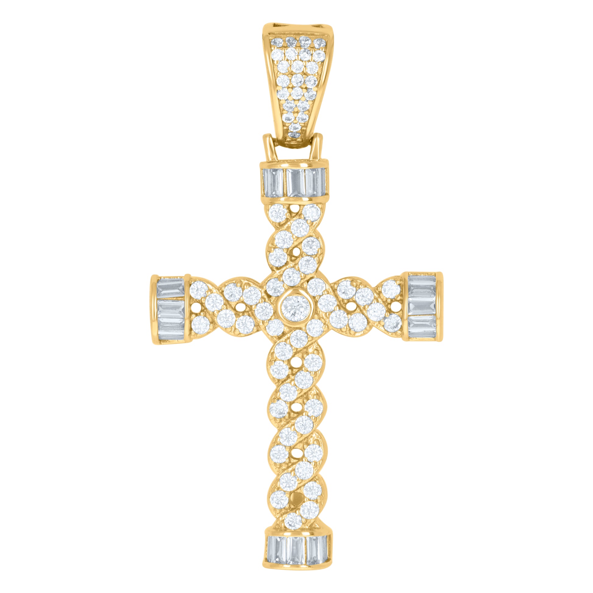 925 Sterling Silver Yellow-Tone Mens Cubic-Zirconia Twisted Cross Religious Charm Pendant