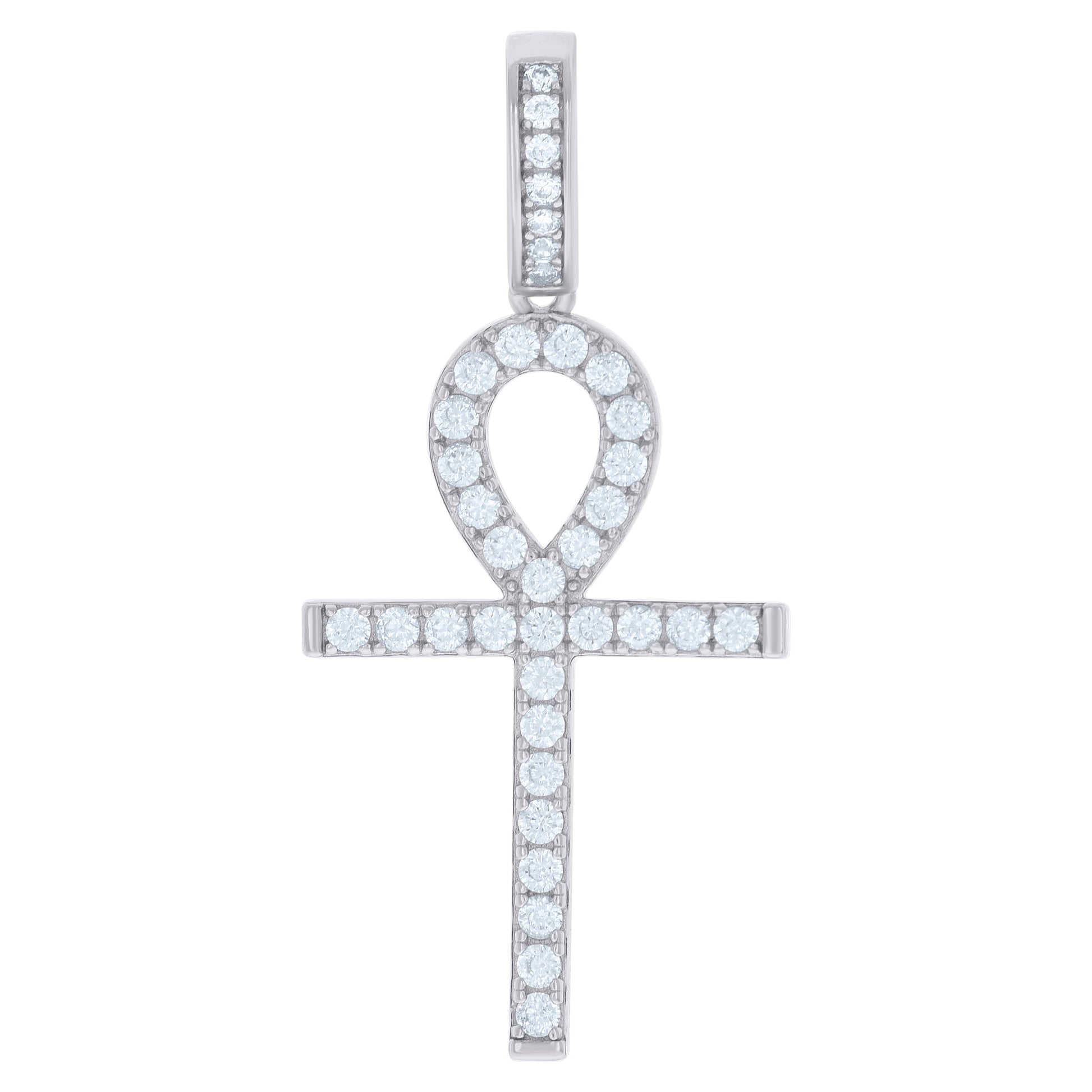 925 Sterling Silver Mens Round Cubic-Zirconia Egyptian Ankh Cross Religious Charm Pendant