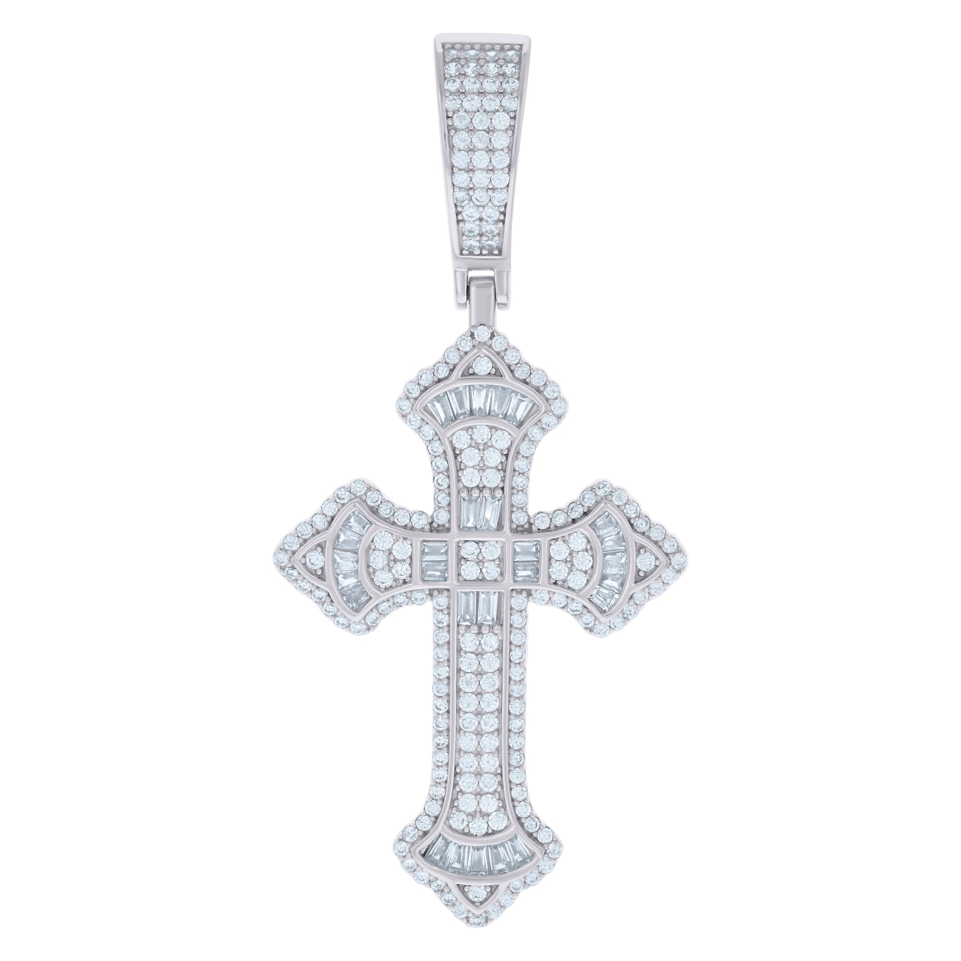925 Sterling Silver Mens Baguette Round Cubic-Zirconia Cross Religious Charm Pendant