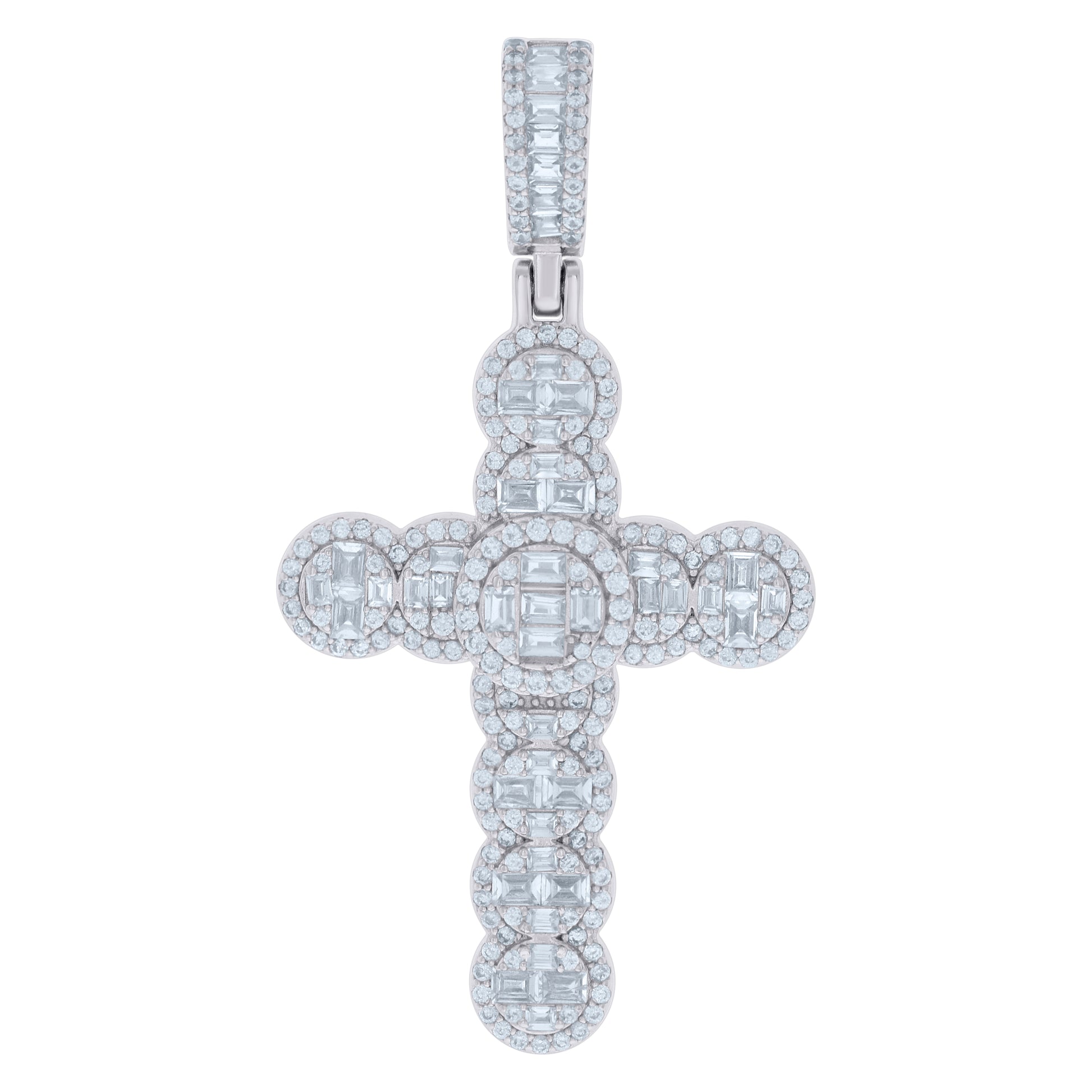 925 Sterling Silver Mens Baguette Round Cubic-Zirconia Cross Religious Charm Pendant