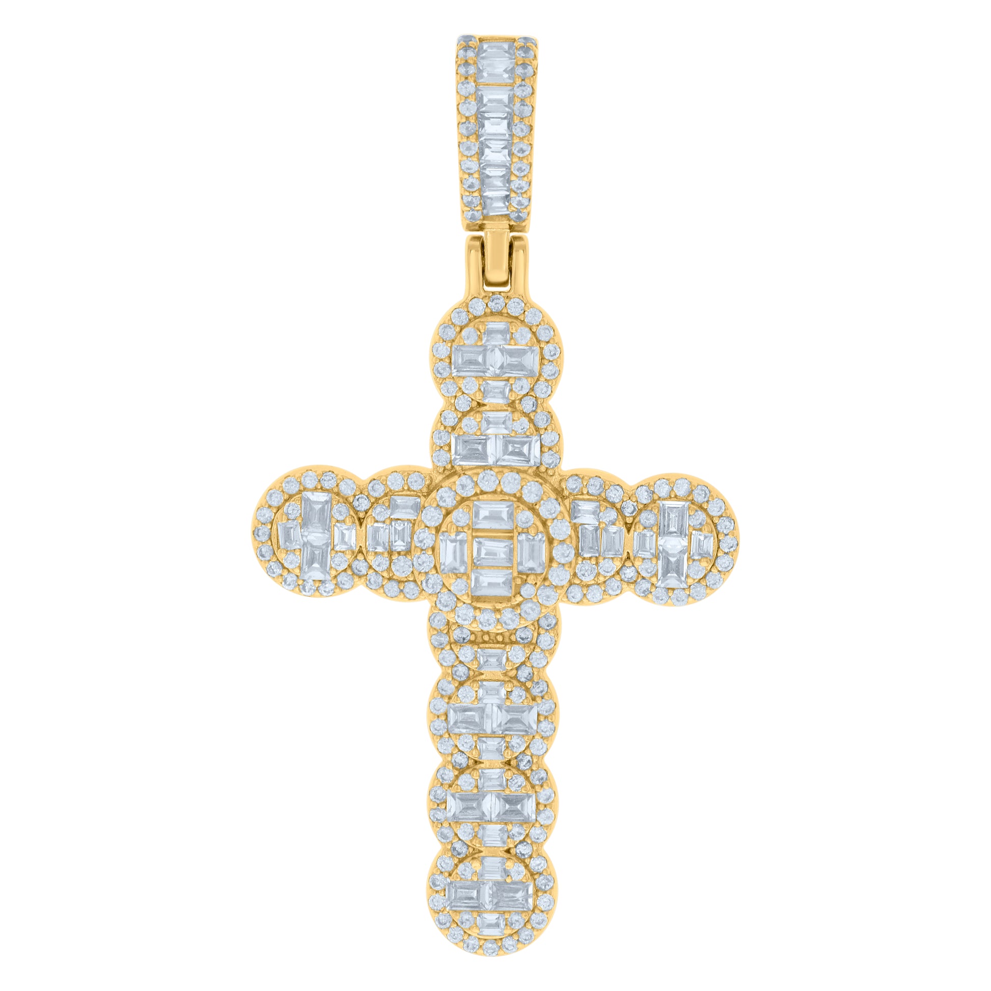 925 Sterling Silver Yellow-tone Mens Baguette Round Cubic-Zirconia Cross Religious Charm Pendant