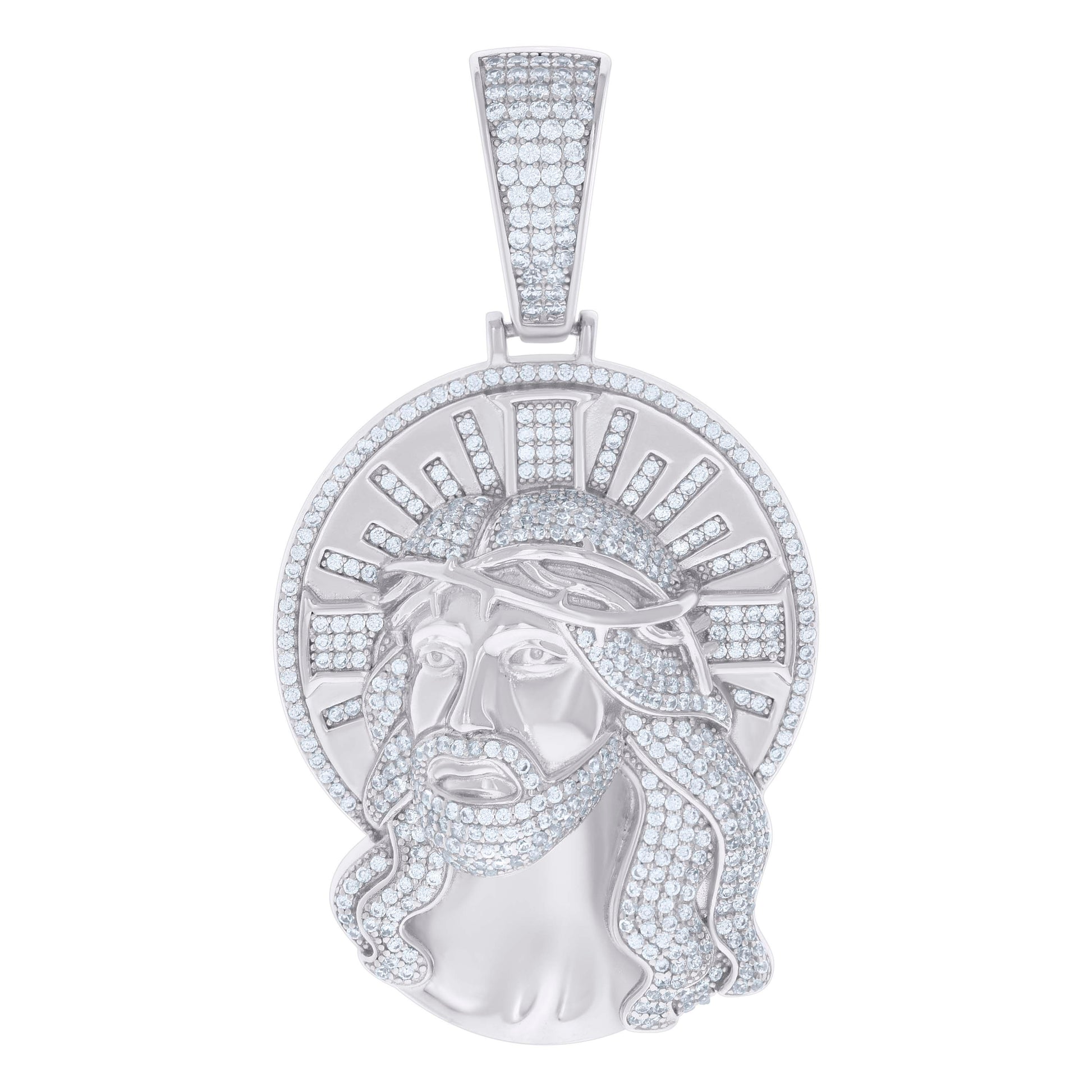 925 Sterling Silver Mens Round Cubic-Zirconia Jesus Religious Charm Pendant