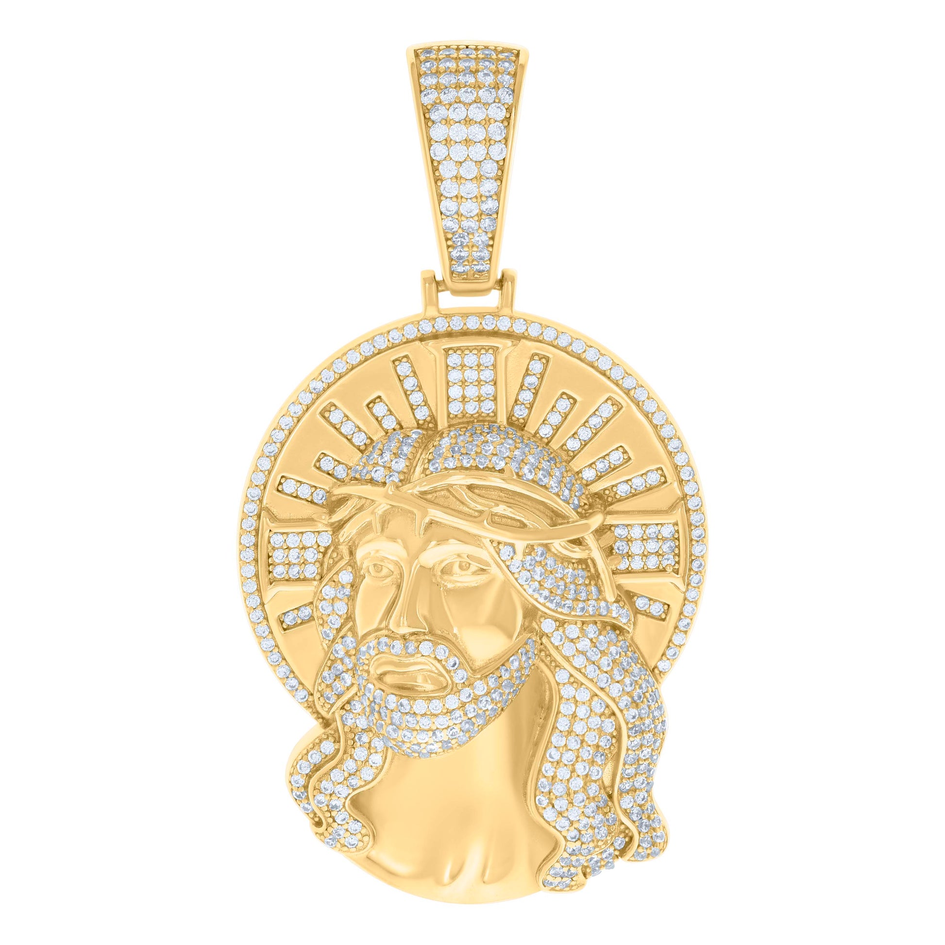 925 Sterling Silver Yellow-tone Mens Round Cubic-Zirconia Jesus Religious Charm Pendant