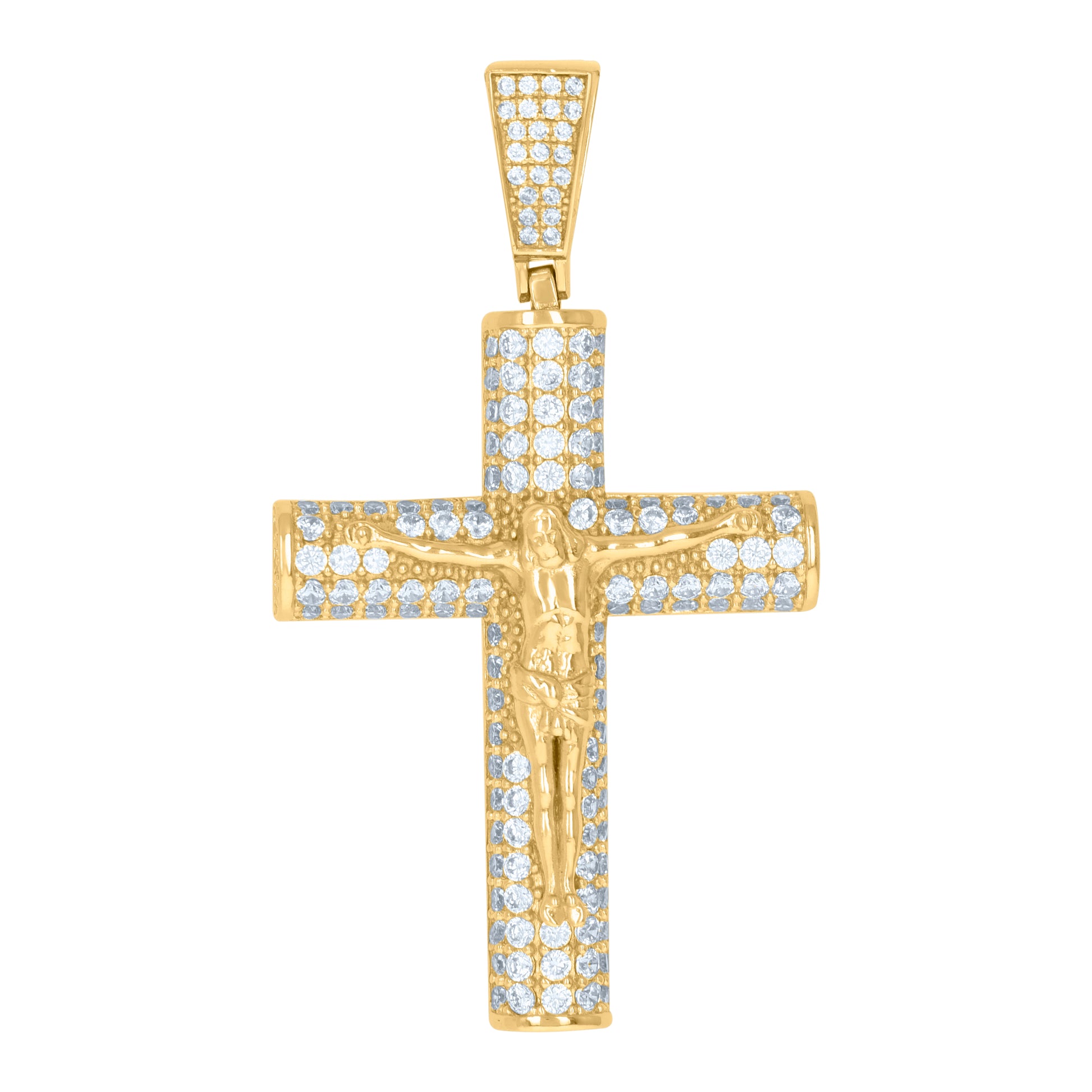 925 Sterling Silver Yellow-Tone Mens Cubic-Zirconia Crucifix Cross Religious Charm Pendant
