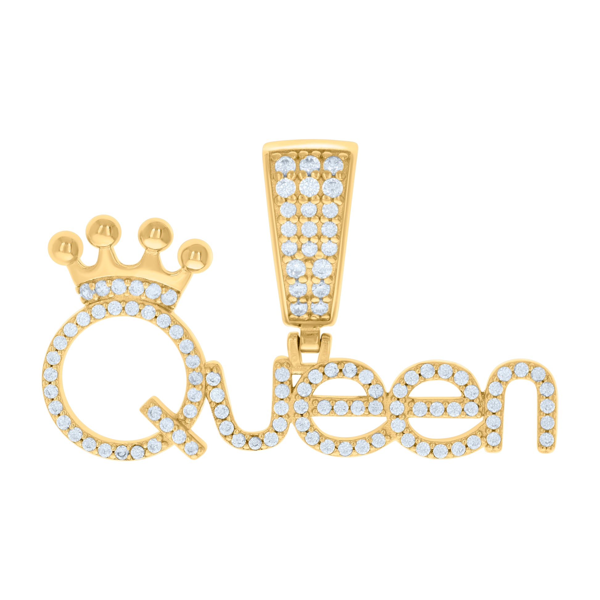 925 Sterling Silver Yellow-tone Womens Cubic-Zirconia Queen Fashion Charm Pendant