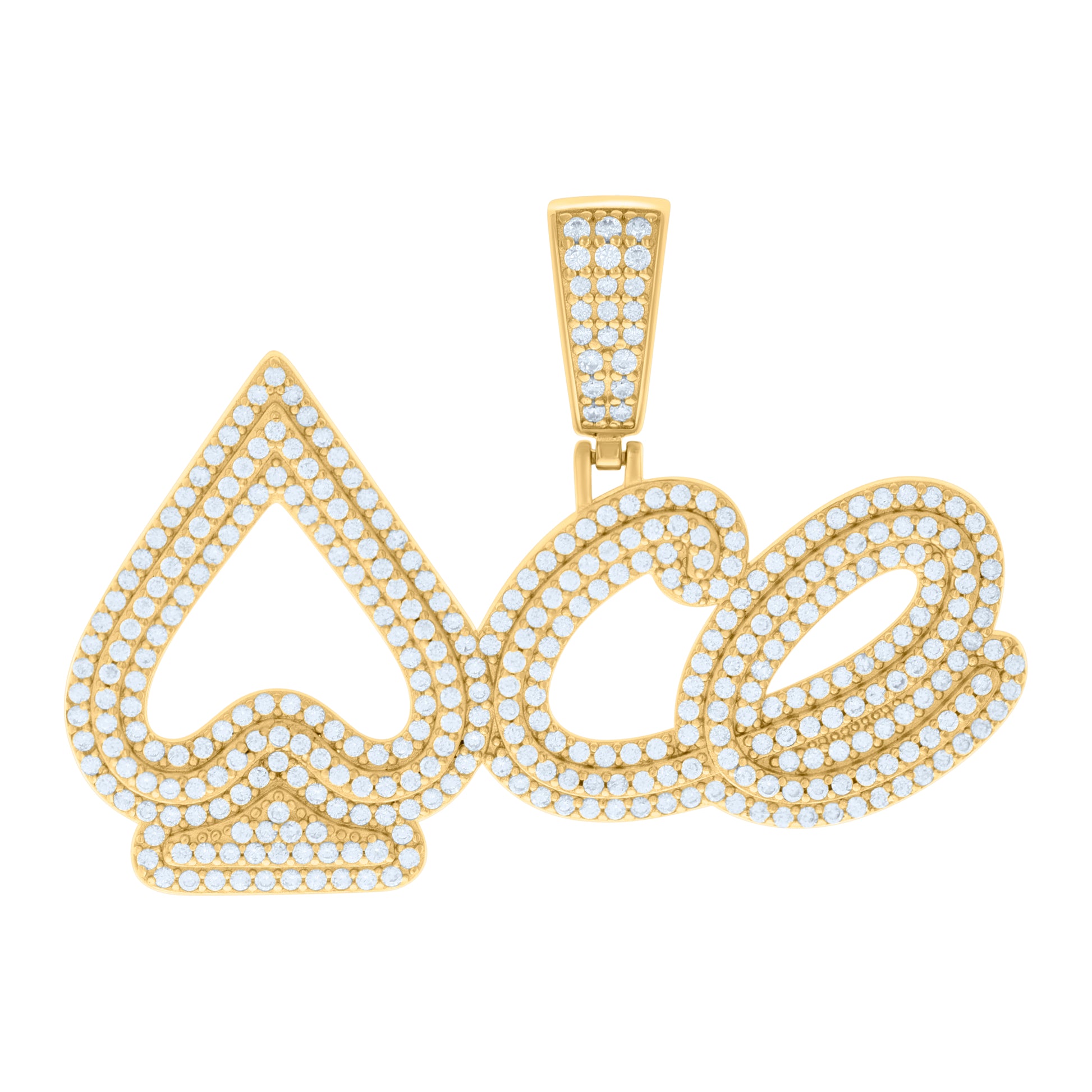 925 Sterling Silver Yellow-tone Mens Cubic-Zirconia Ace Playing Cards Gambling Charm Pendant
