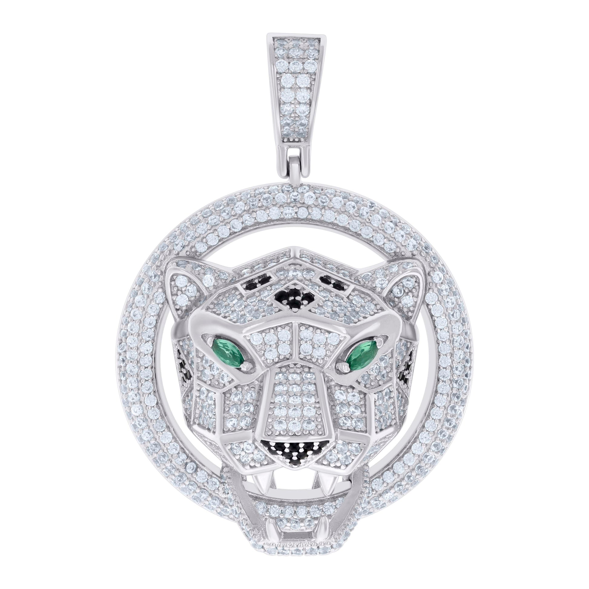 925 Sterling Silver Mens Green/Black White Marquise Round Cubic-Zirconia Panther Head Animal Pendant