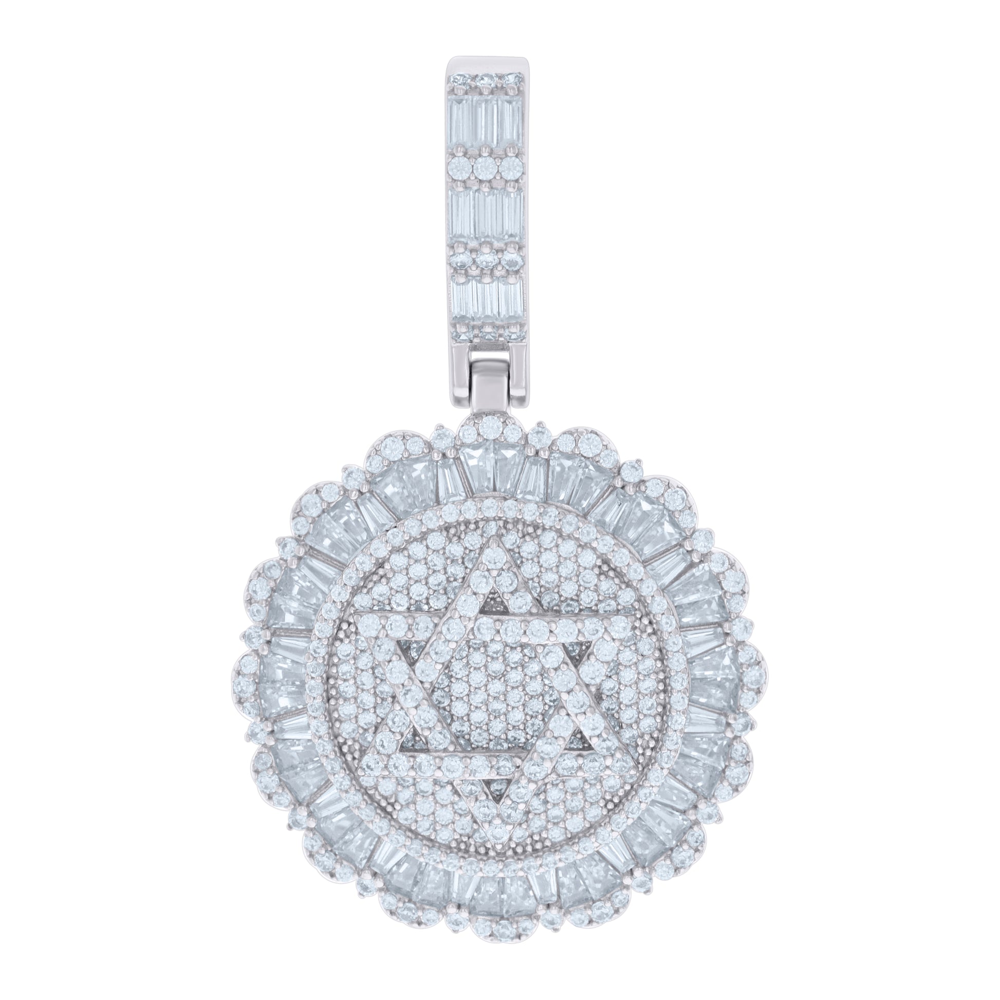 925 Sterling Silver Mens Baguette Round Cubic-Zirconia Star Of David Symbol Religious Charm Pendant