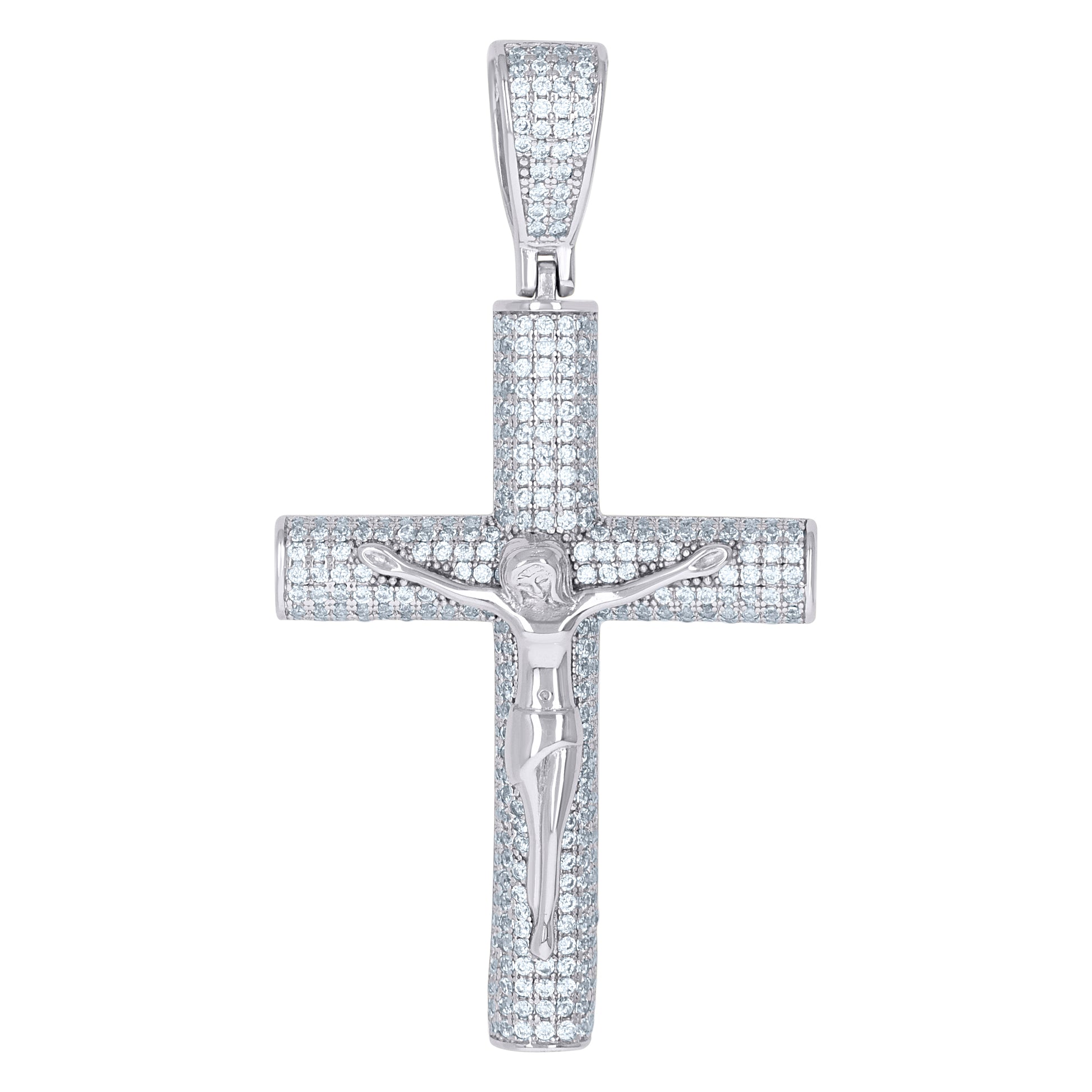 925 Sterling Silver Mens Cubic-Zirconia Crucifix Cross Religious Charm Pendant