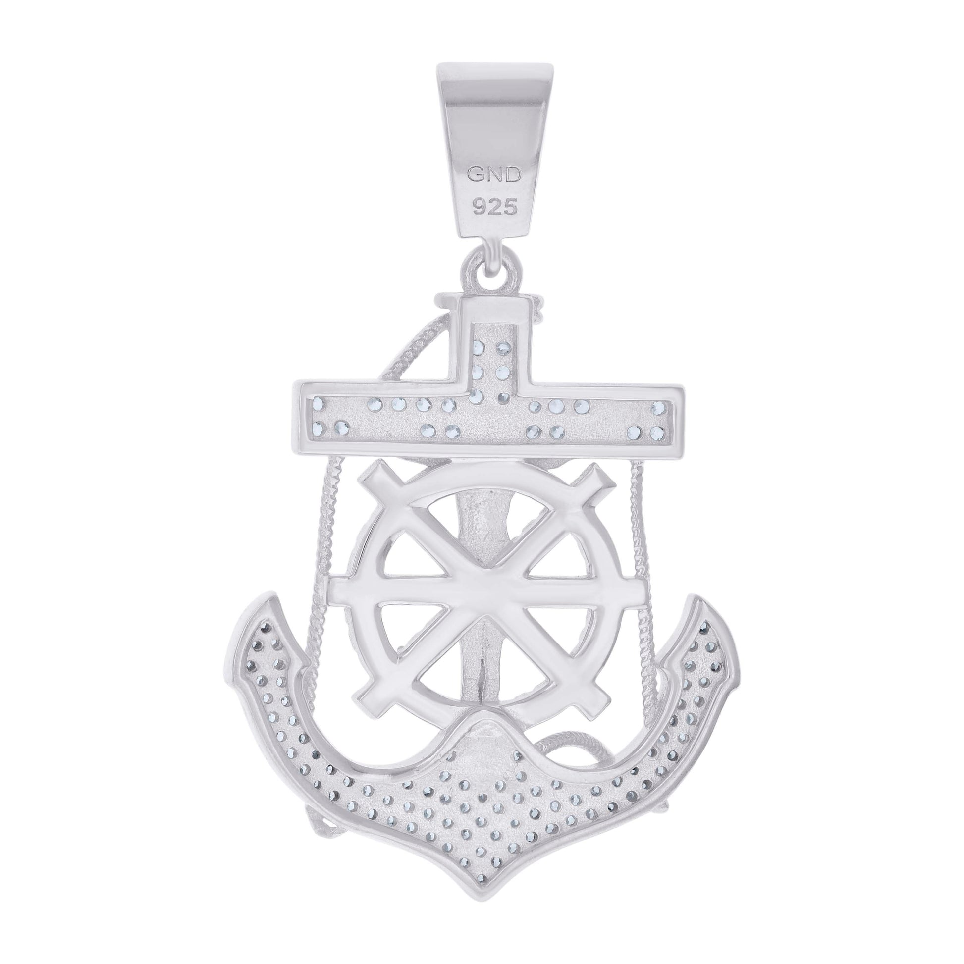 925 Sterling Silver Mens Cubic-Zirconia Anchor Crucifix Religious Charm Pendant