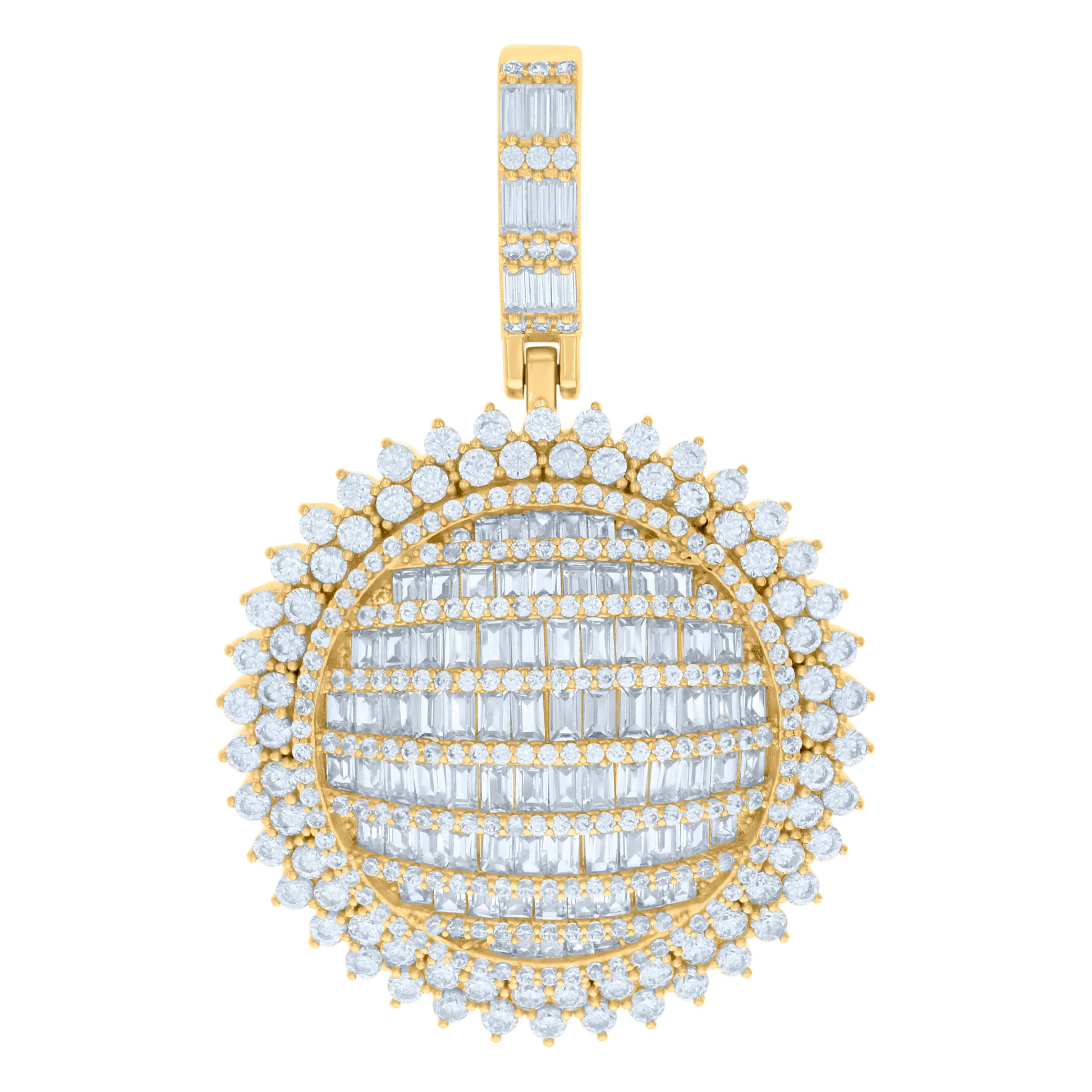 925 Sterling Silver Yellow-tone Mens Baguette Round Cubic-Zirconia Fashion Charm Pendant