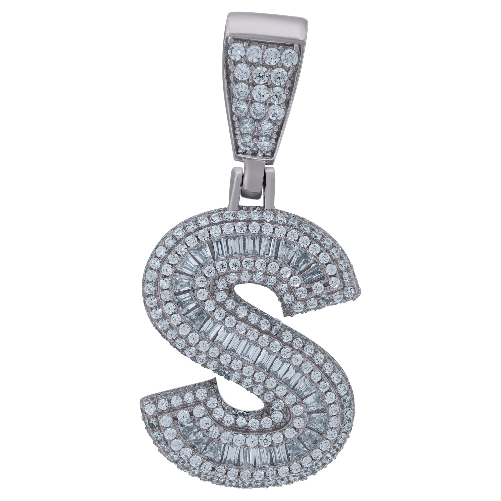 925 Sterling Silver Mens Baguette Cubic-Zirconia Initial Alphabet S Charm Pendant