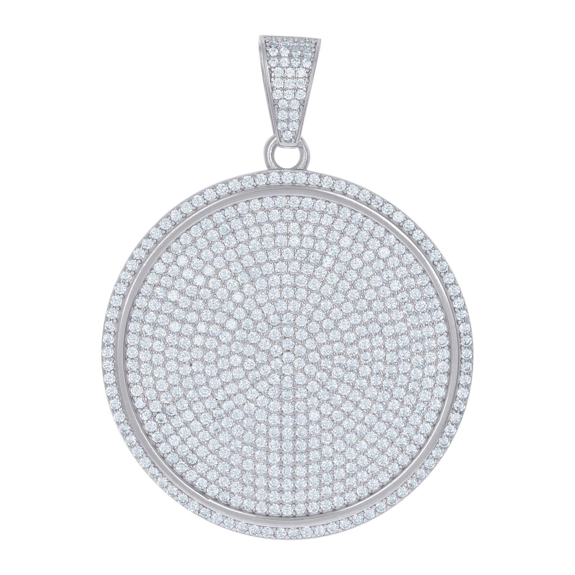 925 Sterling Silver Mens Cubic-Zirconia Medallion Round Cluster Charm Pendant