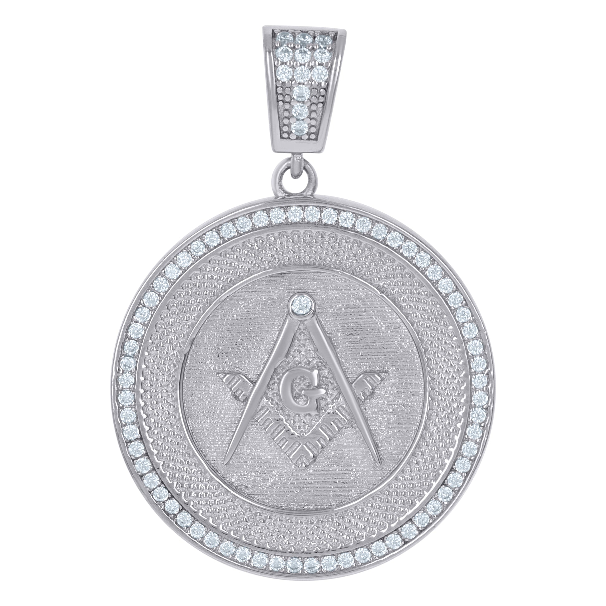 925 Sterling Silver Mens Cubic-Zirconia Masonic Medallion Symbol Religious Charm Pendant