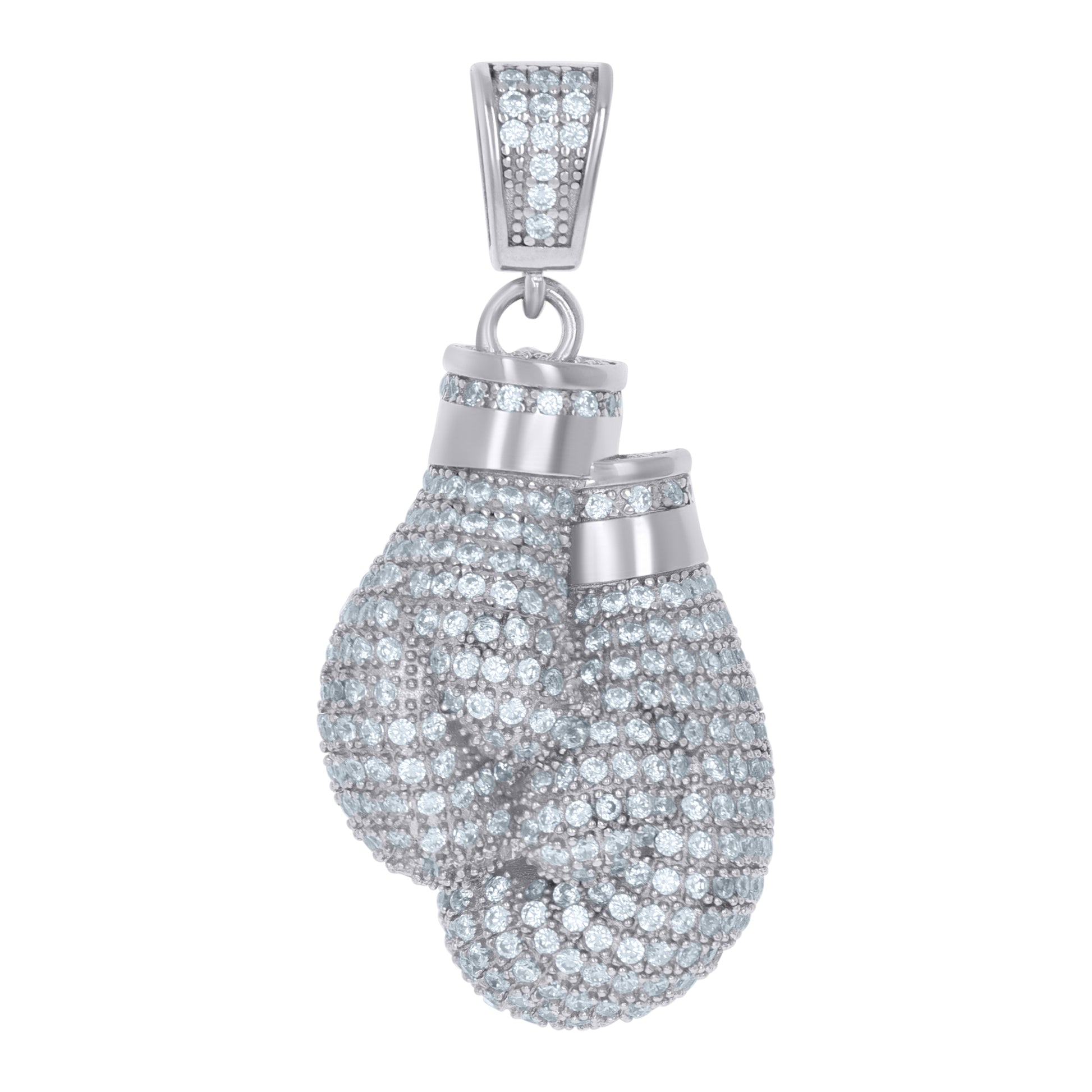 925 Sterling Silver Mens Cubic-Zirconia Boxing Gloves Sports Charm Pendant