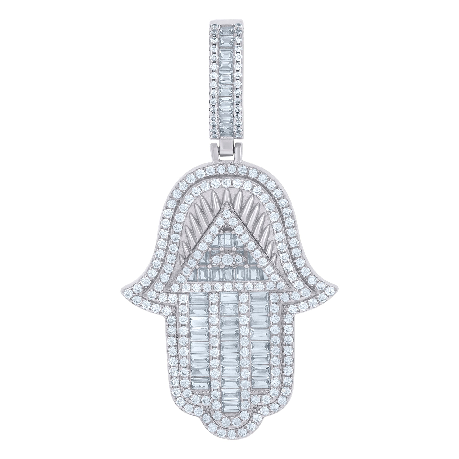 925 Sterling Silver Mens Baguette Cubic-Zirconia Humsa Symbol Religious Charm Pendant