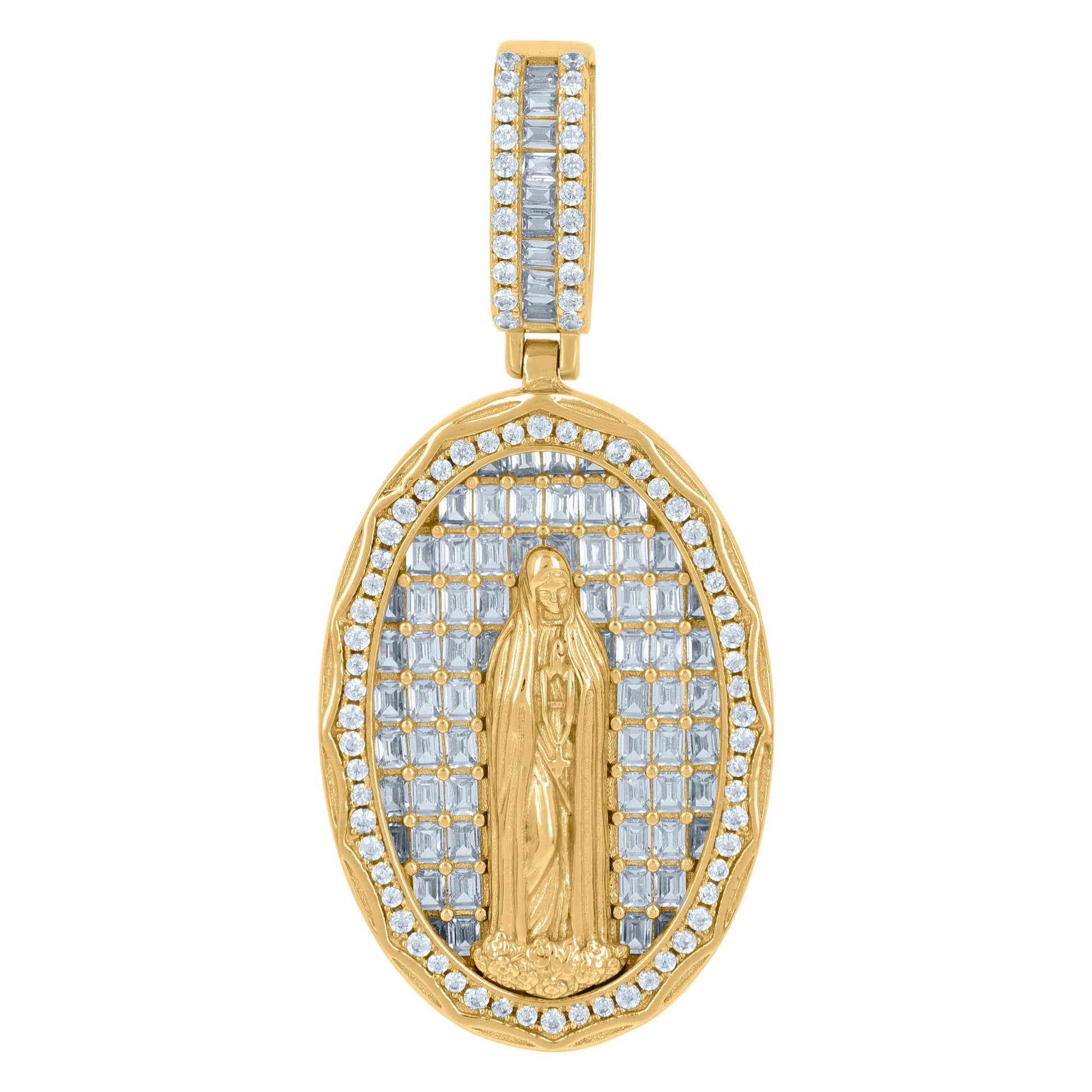 925 Sterling Silver Yellow-Tone Men Baguette Cubic-Zirconia Oval Guadalupe/Mother Marry Religious Charm Pendant