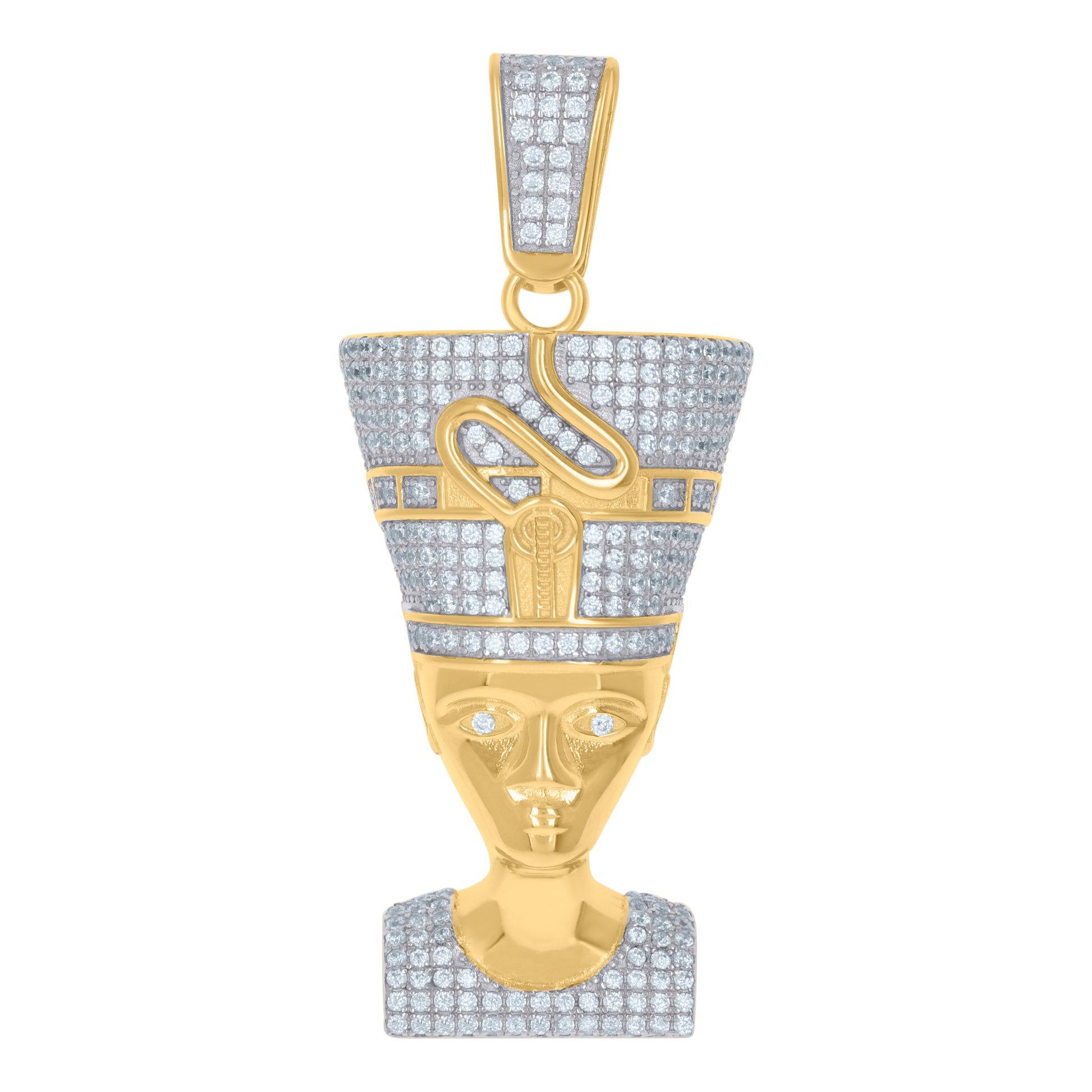 925 Sterling Silver Yellow-Tone Men Cubic-Zirconia Nefertiti Egyptian Fashion Charm Pendant