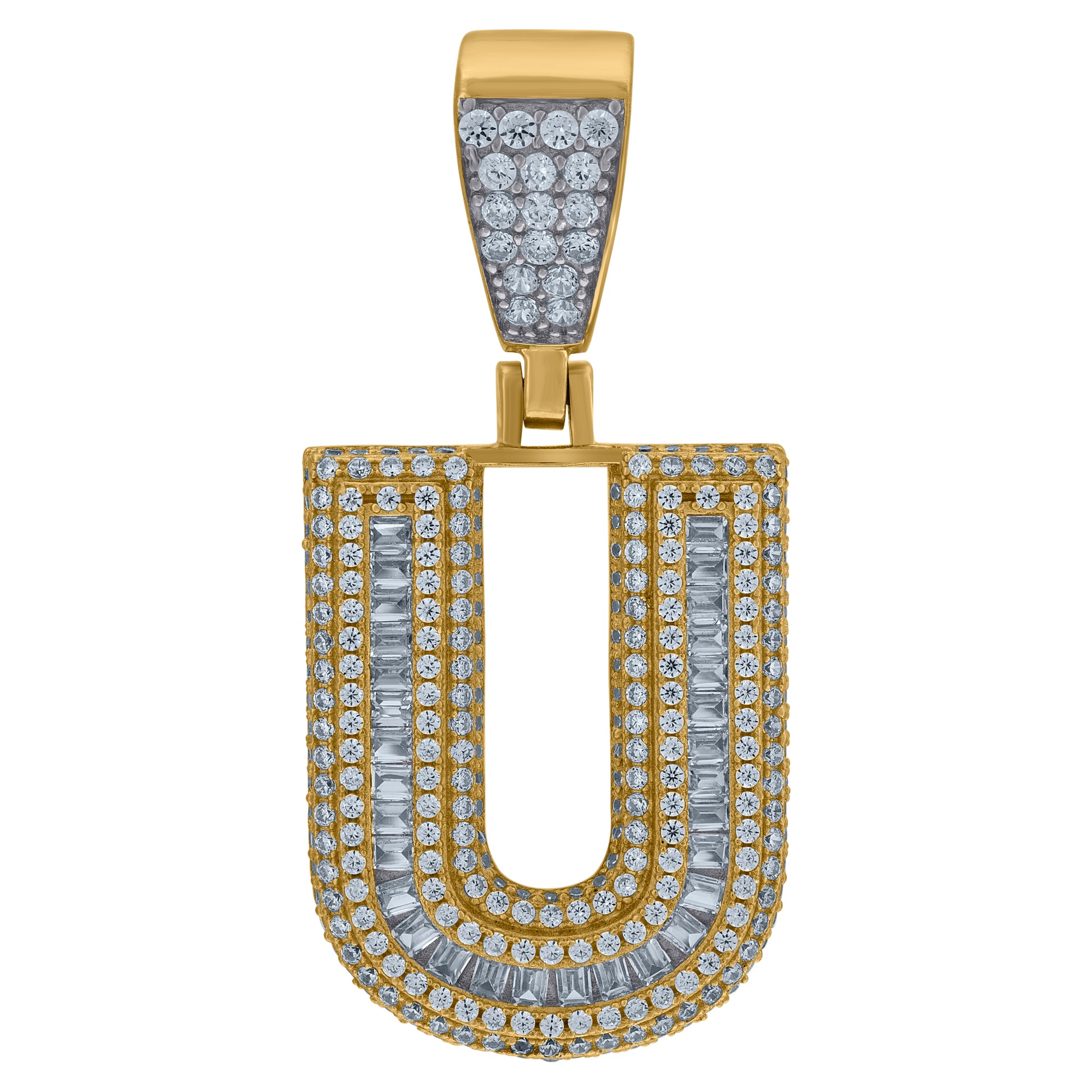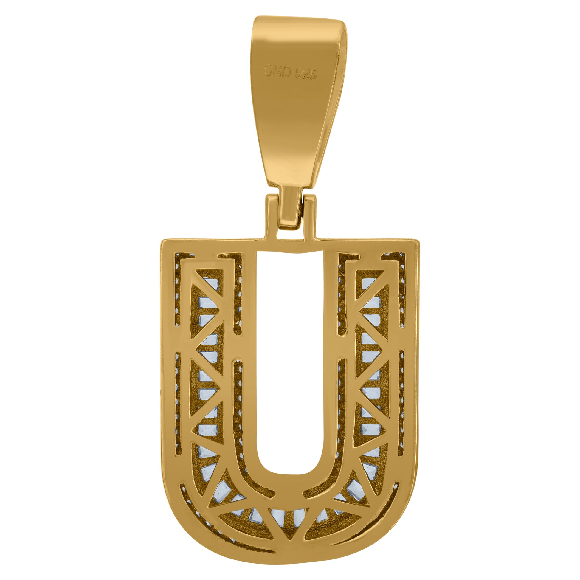 925 Sterling Silver Yellow-Tone Mens Baguette Cubic-Zirconia U Alphabet Initials Charm Pendant