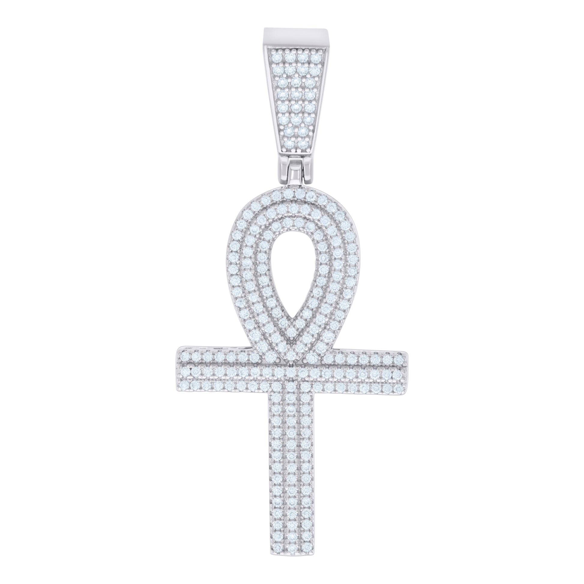 925 Sterling Silver Unisex CZ Ankh Cross Religious Charm Pendant