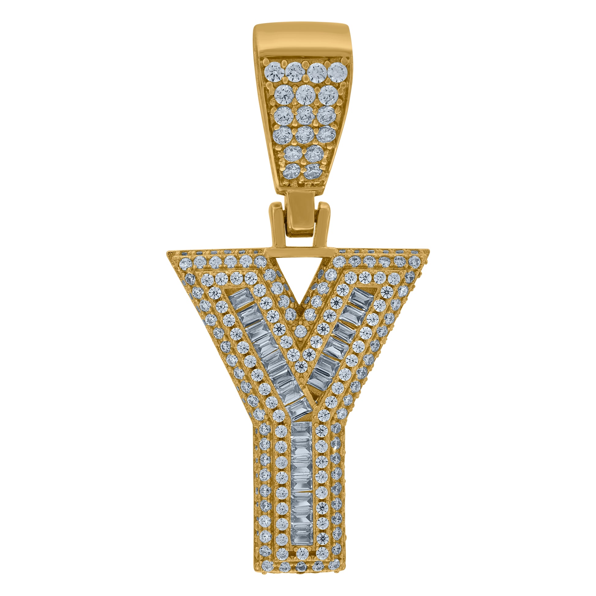 925 Sterling Silver Yellow-Tone Mens Baguette Cubic-Zirconia Y Alphabet Initials Charm Pendant