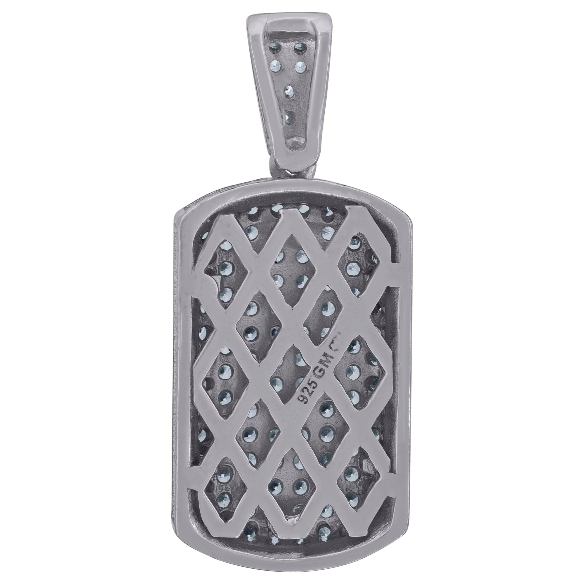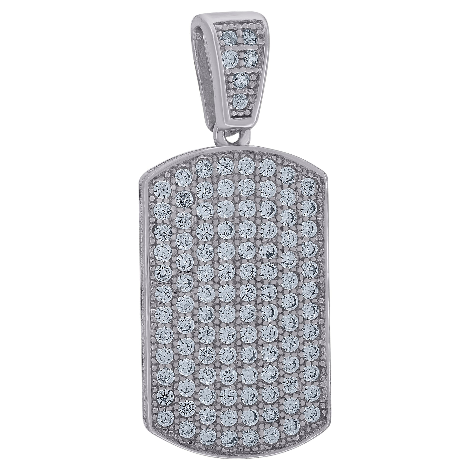 925 Sterling Silver Mens Cubic-Zirconia Dog Tag Fashion Charm Pendant