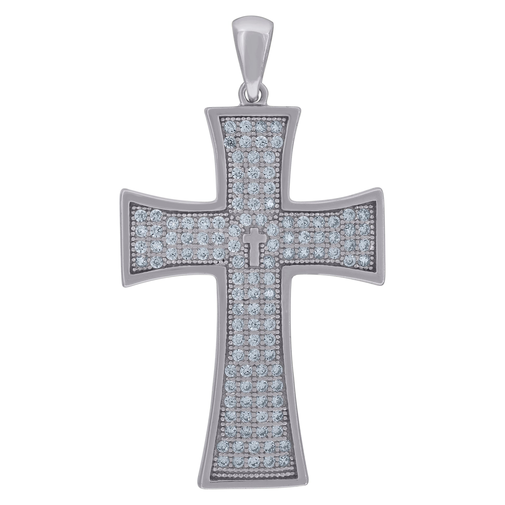 925 Sterling Silver Mens Cubic-Zirconia Cross Religious Charm Pendant