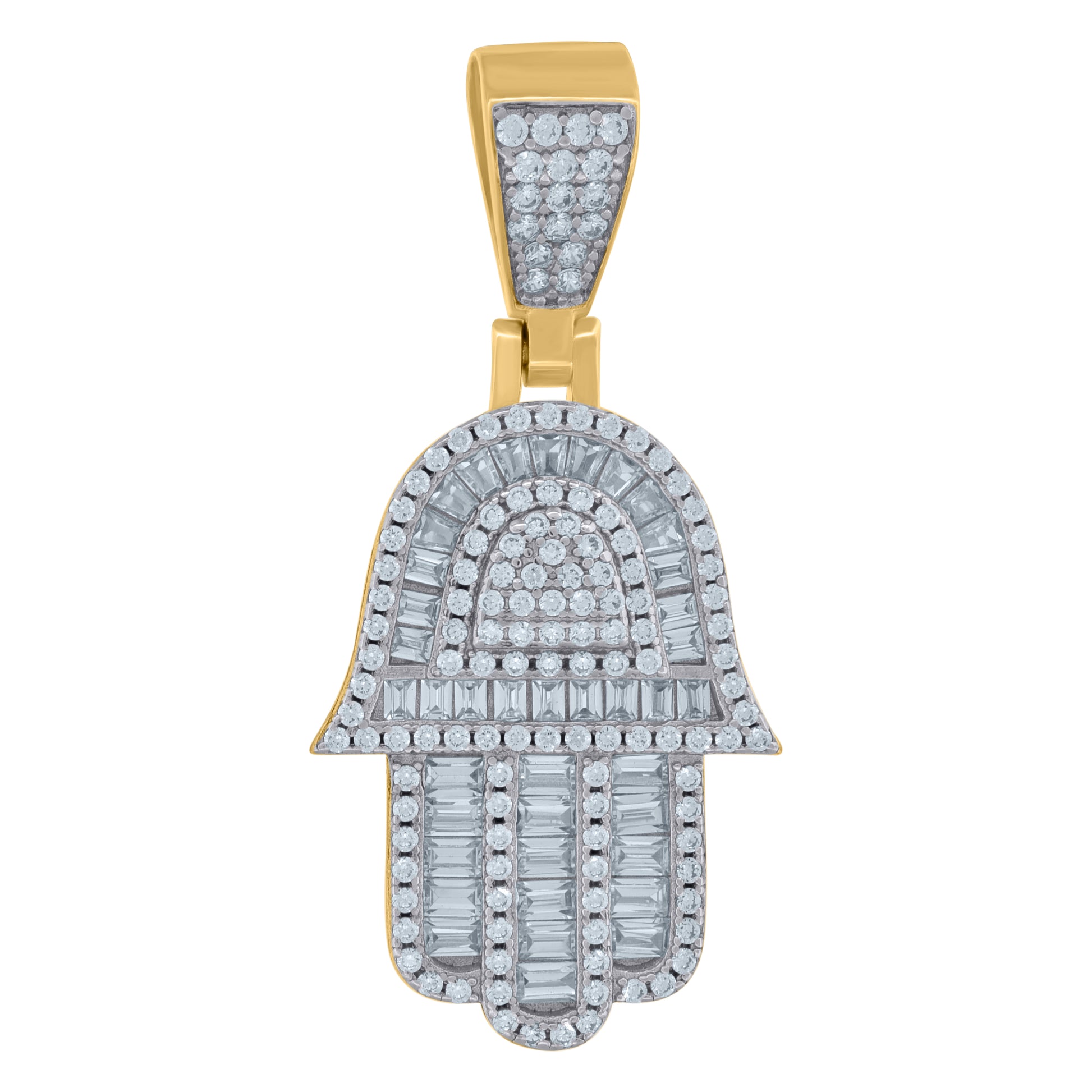 925 Sterling Silver Yellow-Tone Mens Baguette Cubic-Zirconia Humsa Symbol Religious Charm Pendant