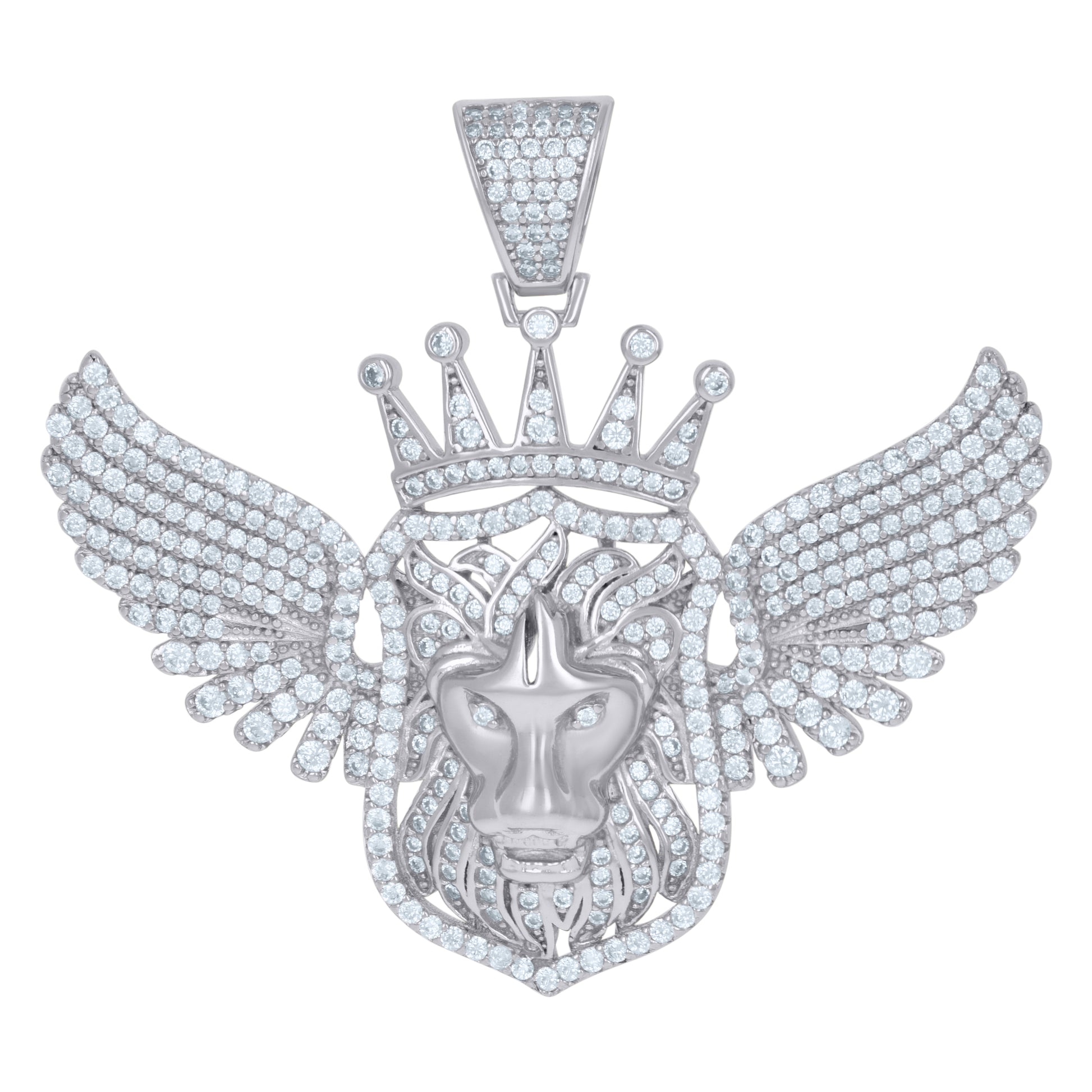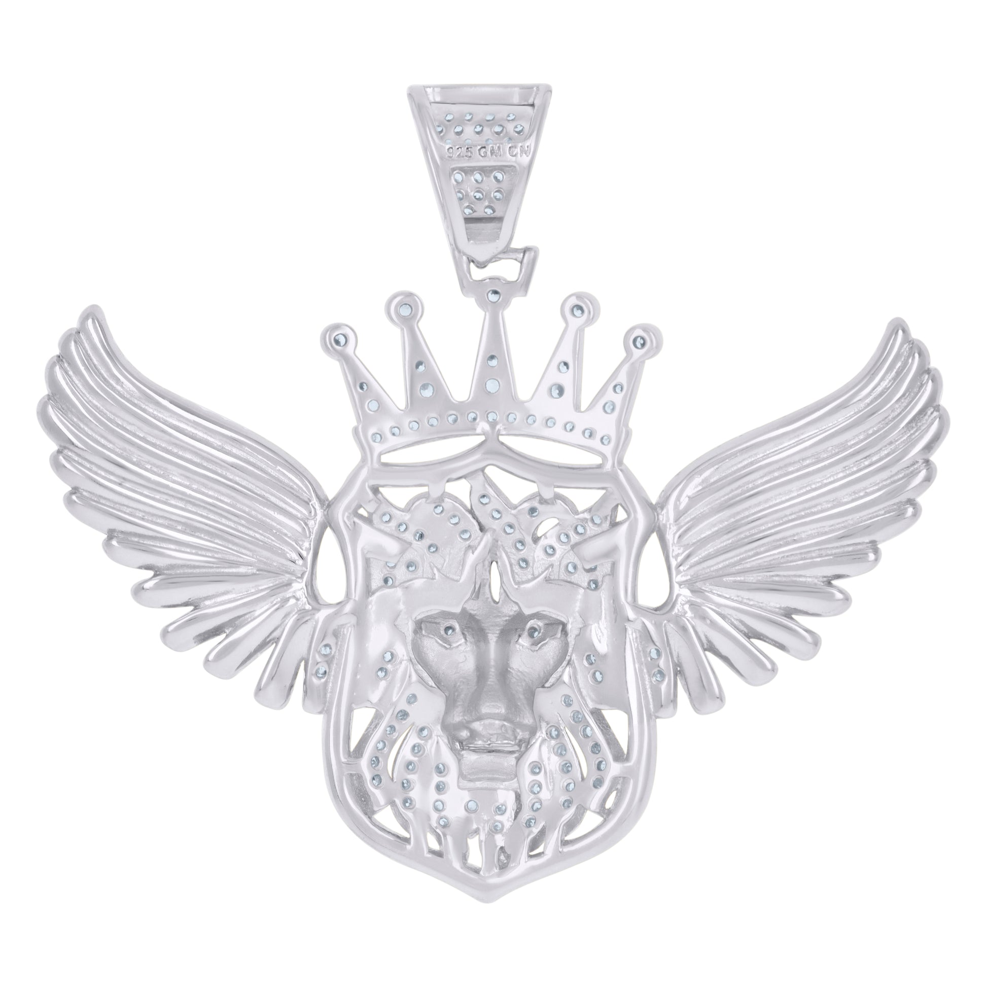 925 Sterling Silver Mens Cubic-Zirconia Leo/Lion Animal Zodiac Sign/Wildlife Charm Pendant