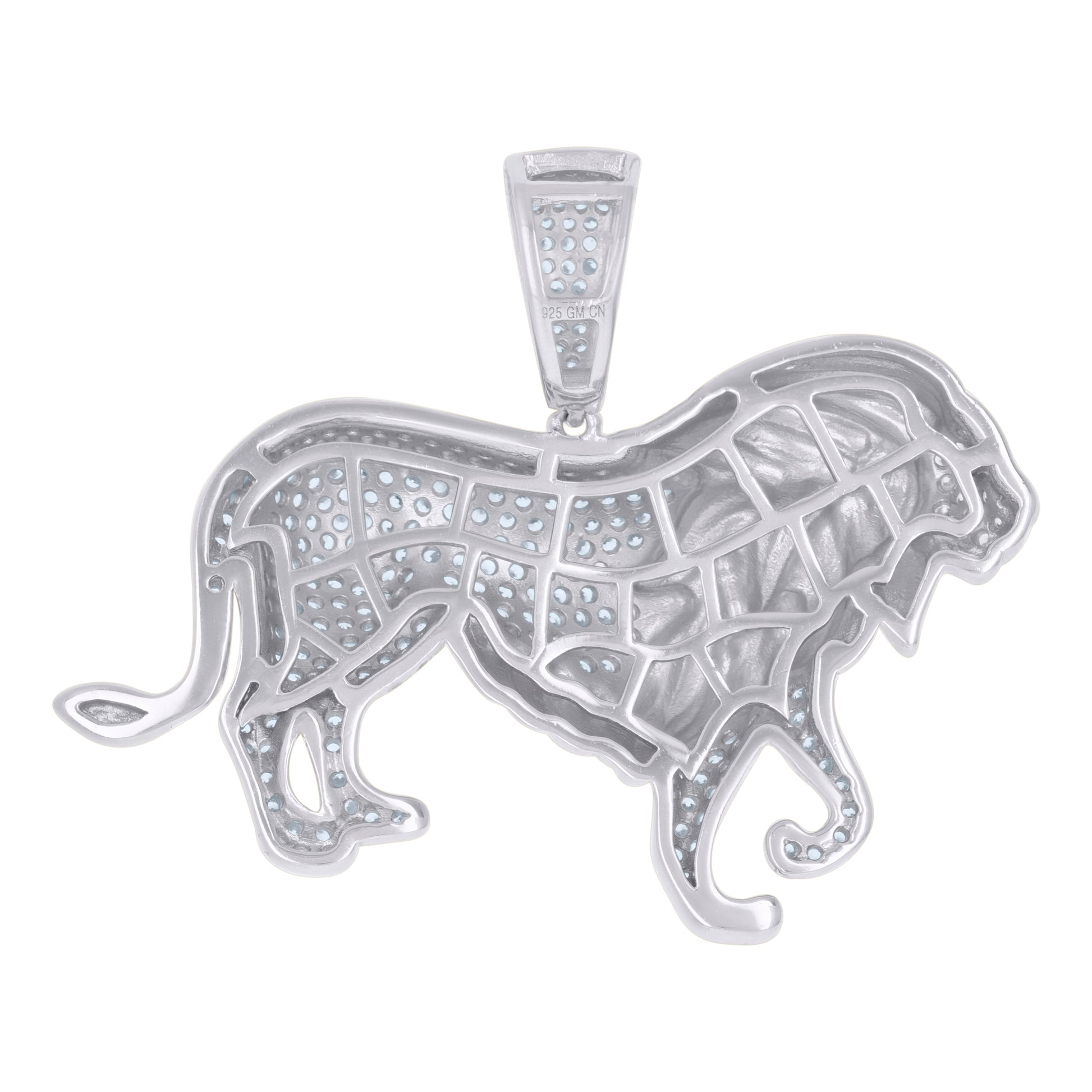 925 Sterling Silver Mens Blue Cubic-Zirconia Lion Animal Wildlife Charm Pendant