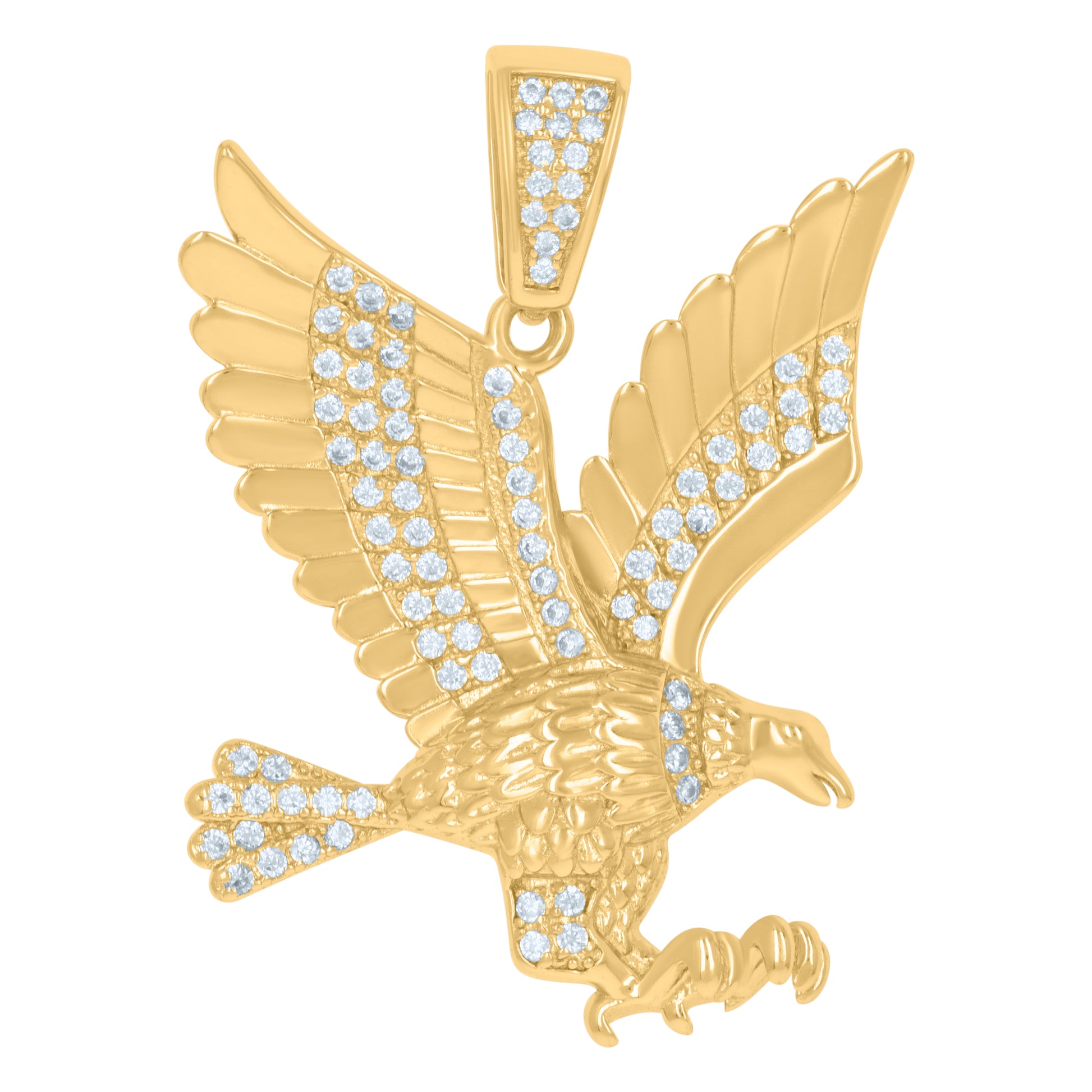 925 Sterling Silver Yellow-Tone Mens Cubic-Zirconia Eagle Birds Wildlife Charm Pendant