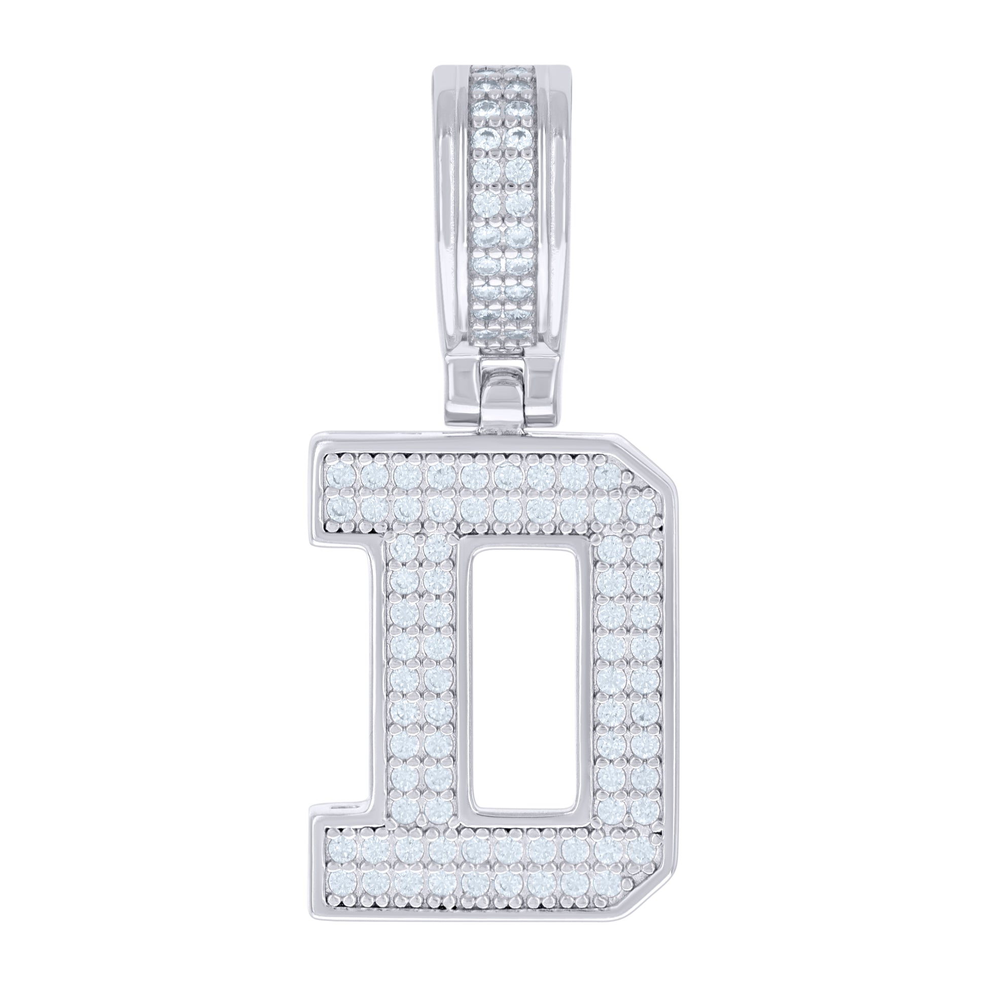 925 Sterling Silver Unisex Cubic-Zirconia Initial Letter D Charm Pendant