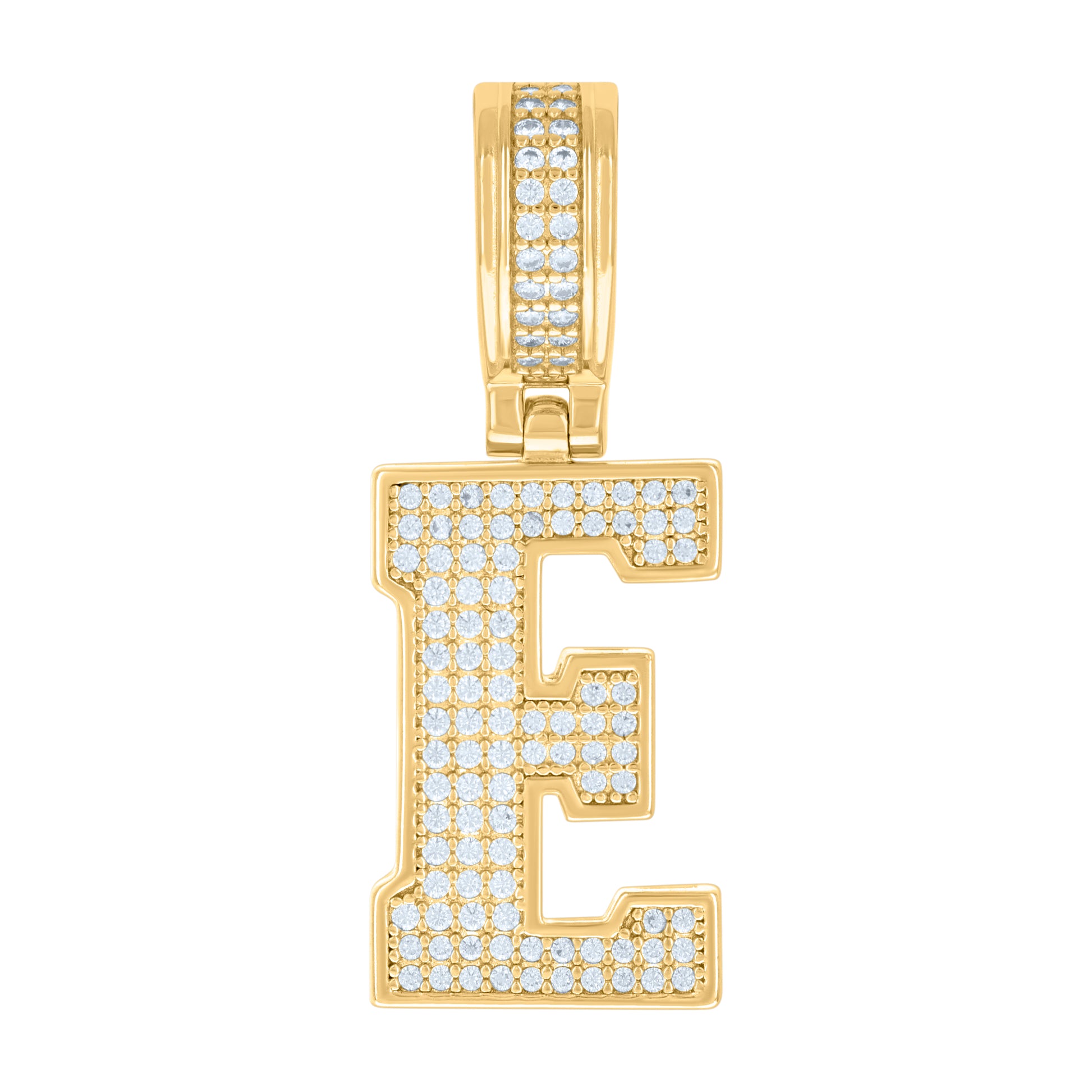 925 Sterling Silver Yellow-Tone Unisex Cubic-Zirconia Initial Letter E Charm Pendant