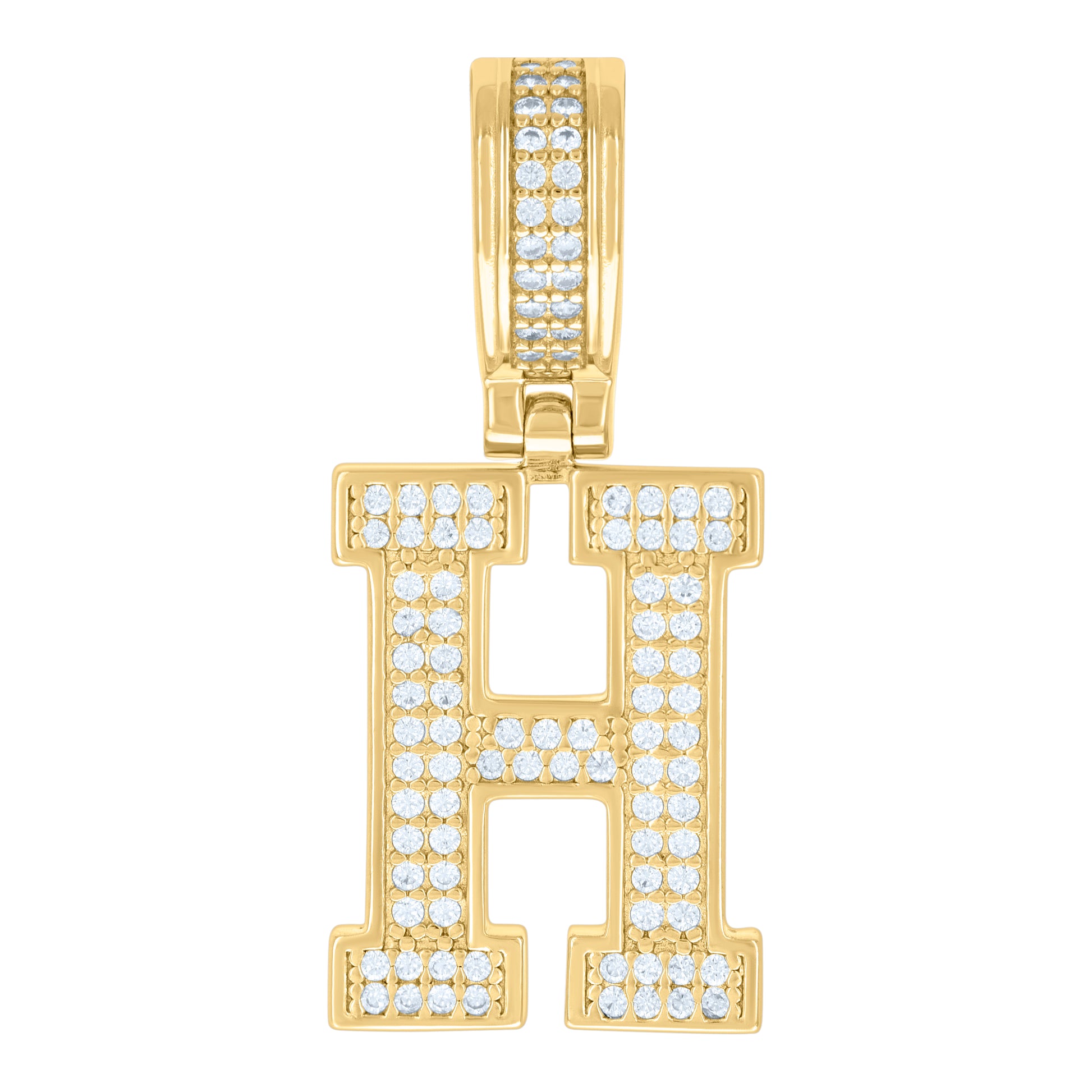 925 Sterling Silver Yellow-Tone Unisex Cubic-Zirconia Initial Letter H Charm Pendant