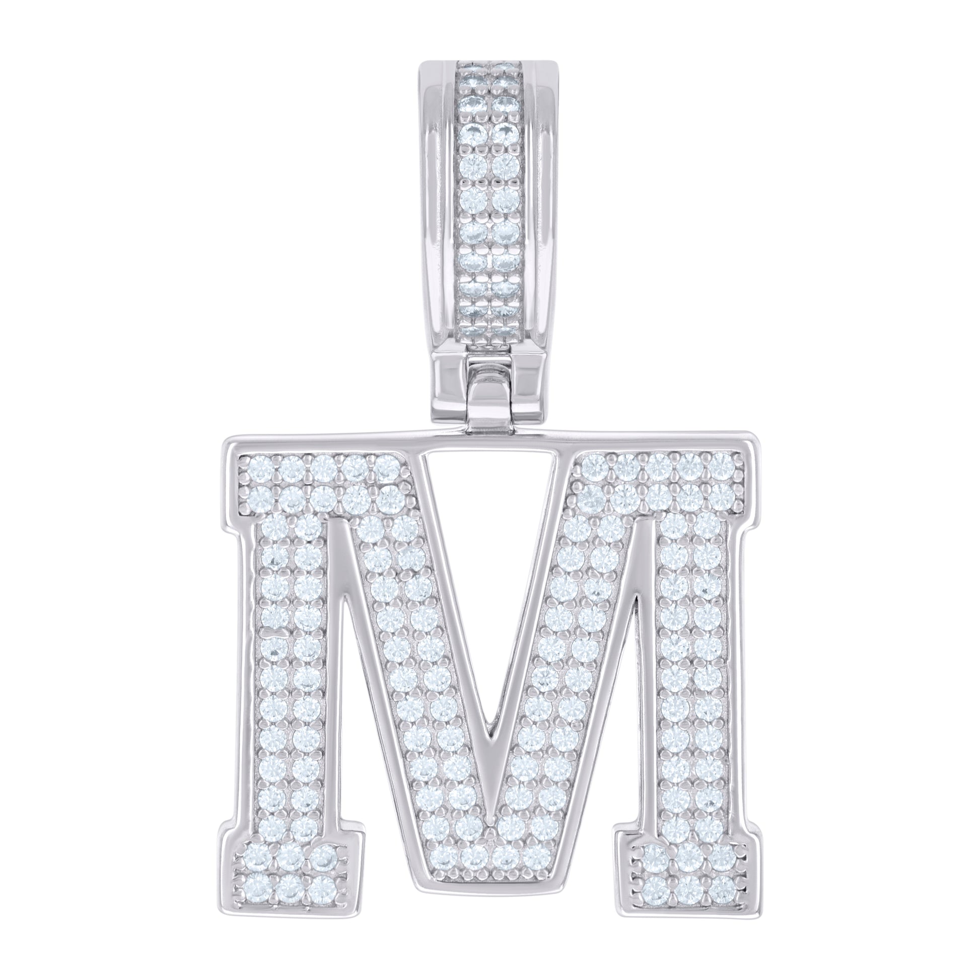 925 Sterling Silver Unisex Cubic-Zirconia Initial Letter M Charm Pendant