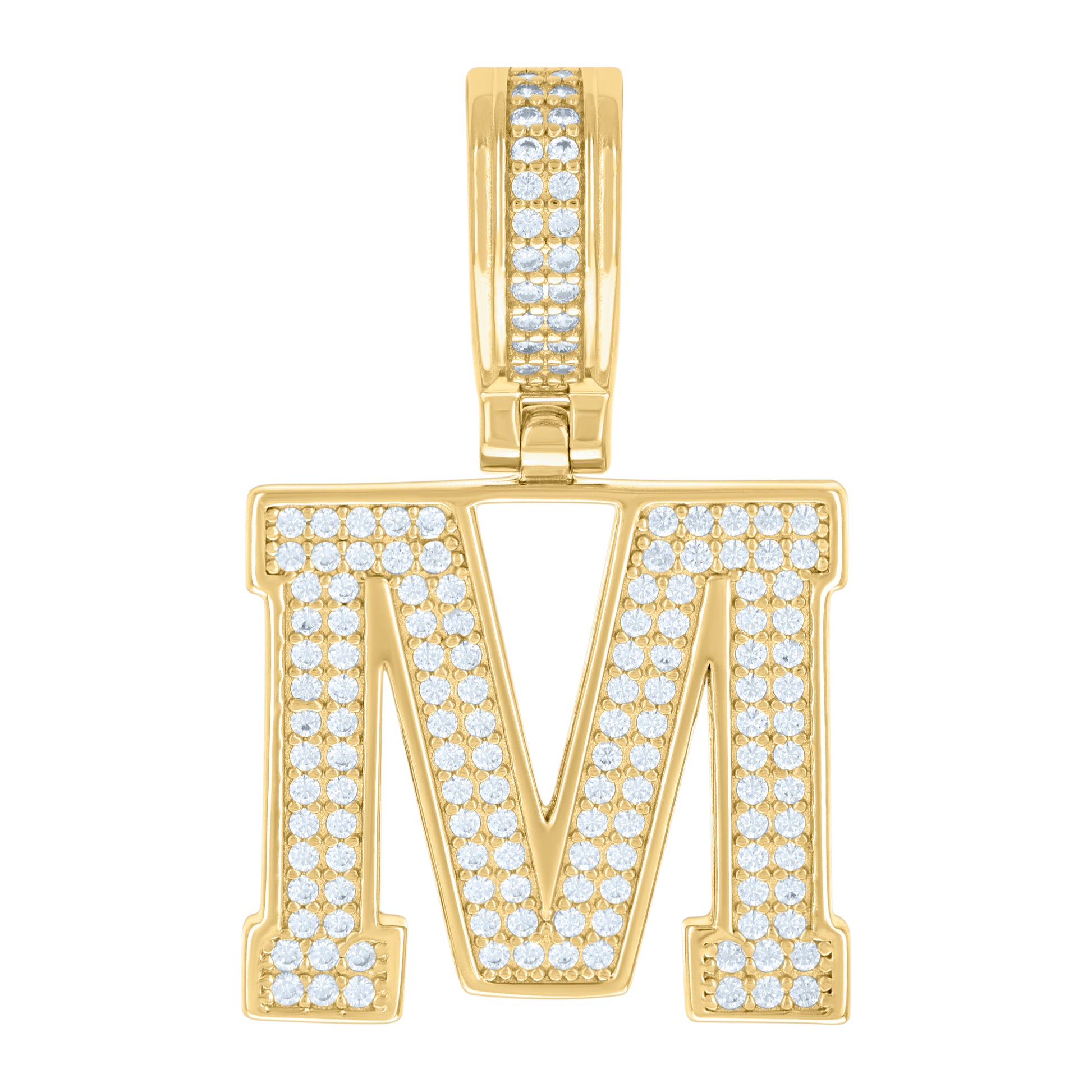 925 Sterling Silver Yellow-Tone Unisex Cubic-Zirconia Initial Letter M Charm Pendant