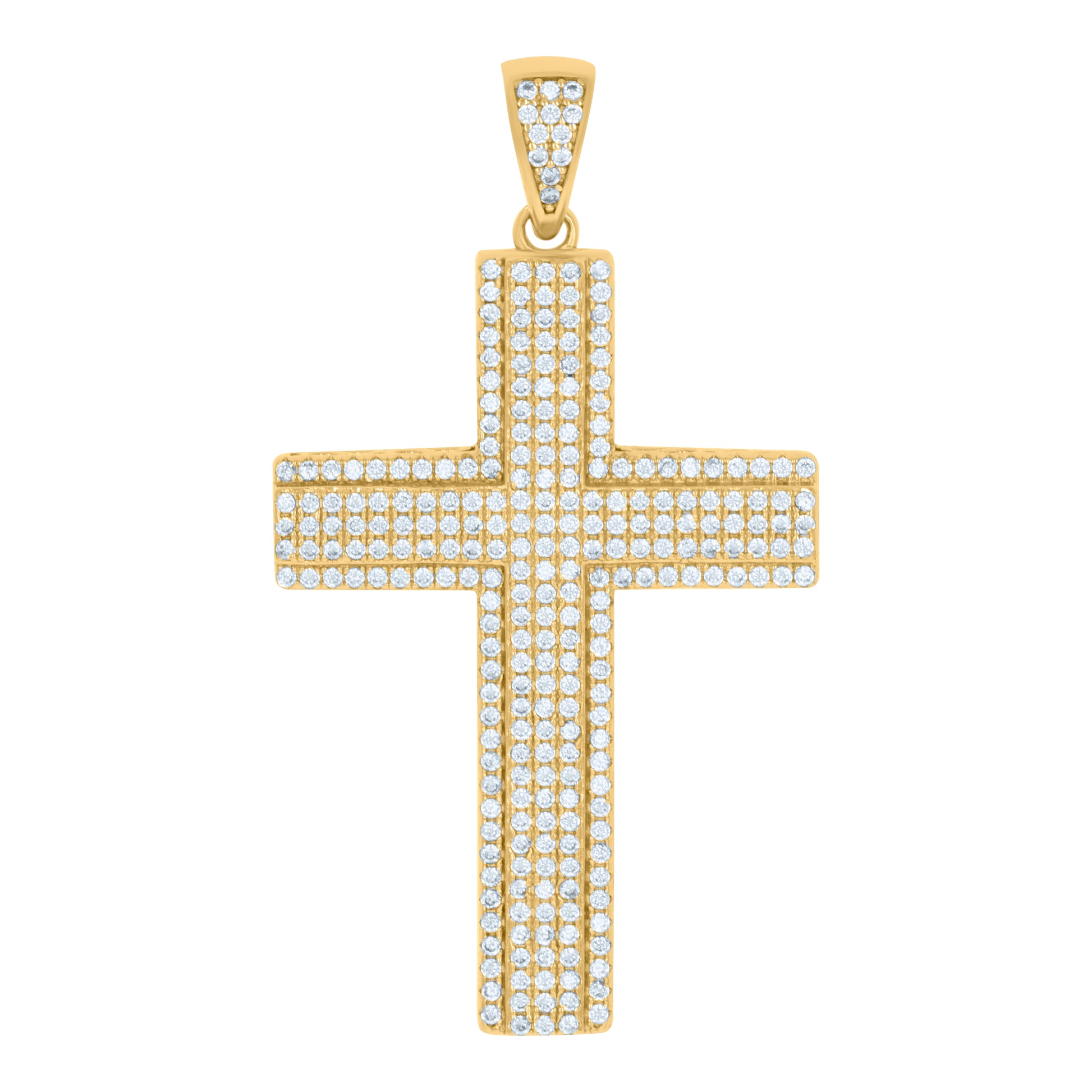 925 Sterling Silver Yellow-Tone Mens Cubic-Zirconia Cross Religious Charm Pendant