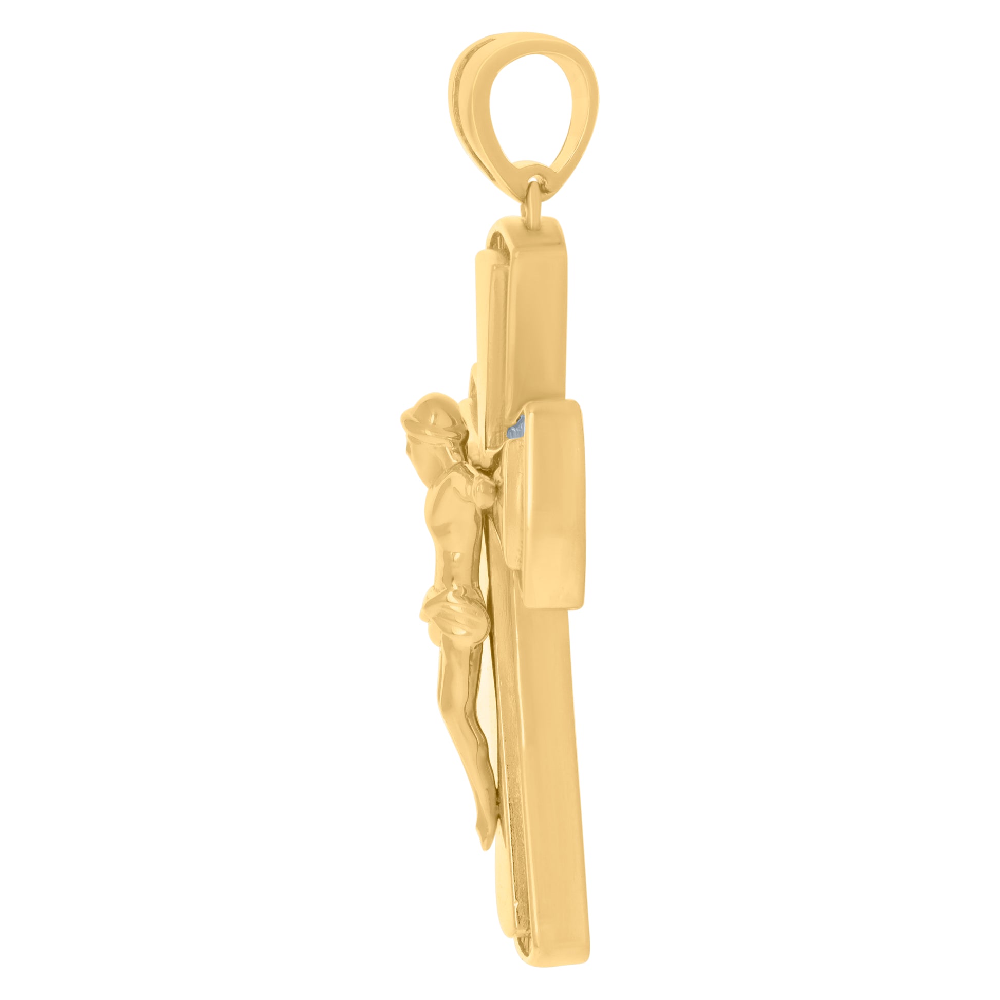 925 Sterling Silver Yellow-Tone Mens Baguette Cubic-Zirconia Crucifix Cross Religious Charm Pendant
