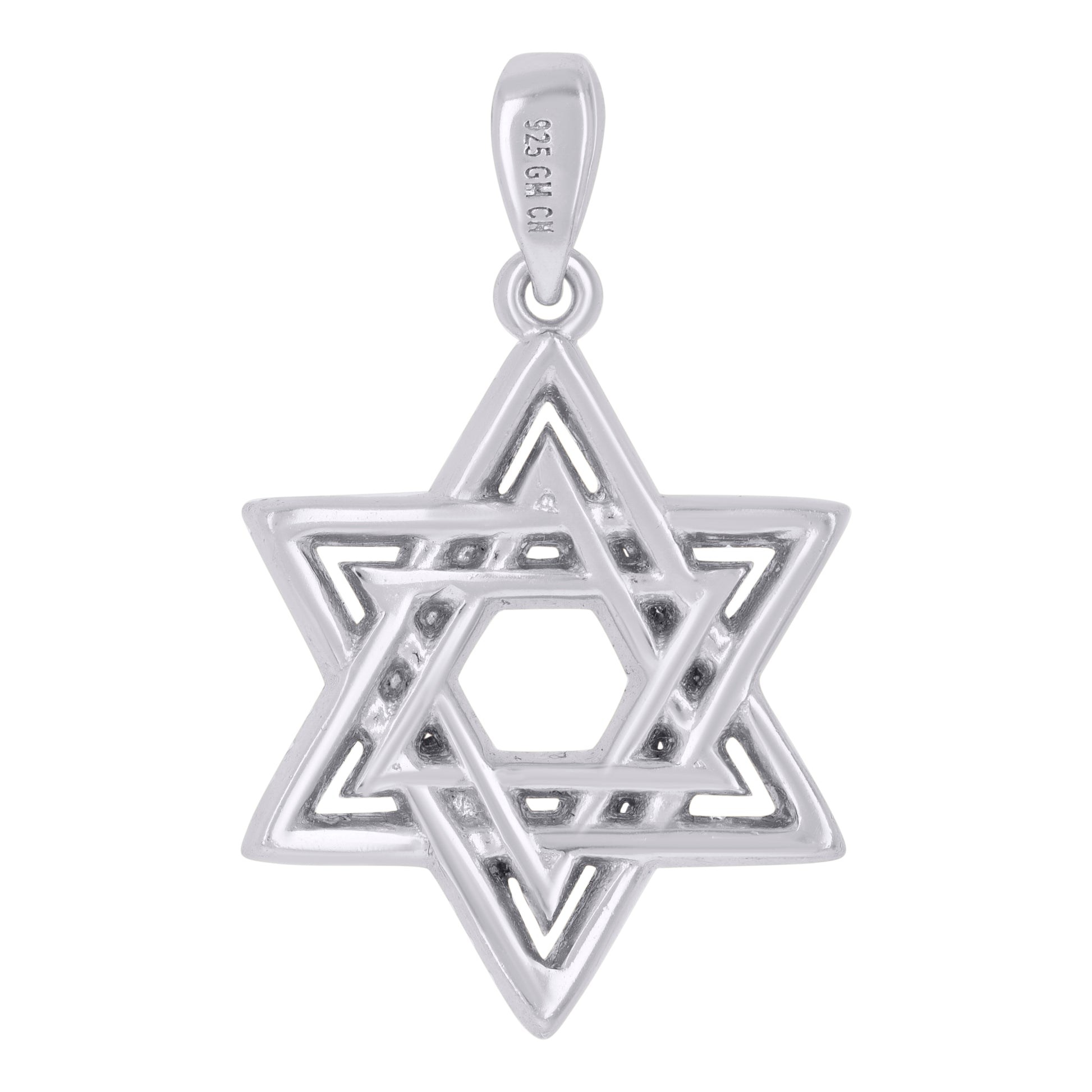 925 Sterling Silver Mens Cubic-Zirconia Star Of David Symbol Religious Charm Pendant
