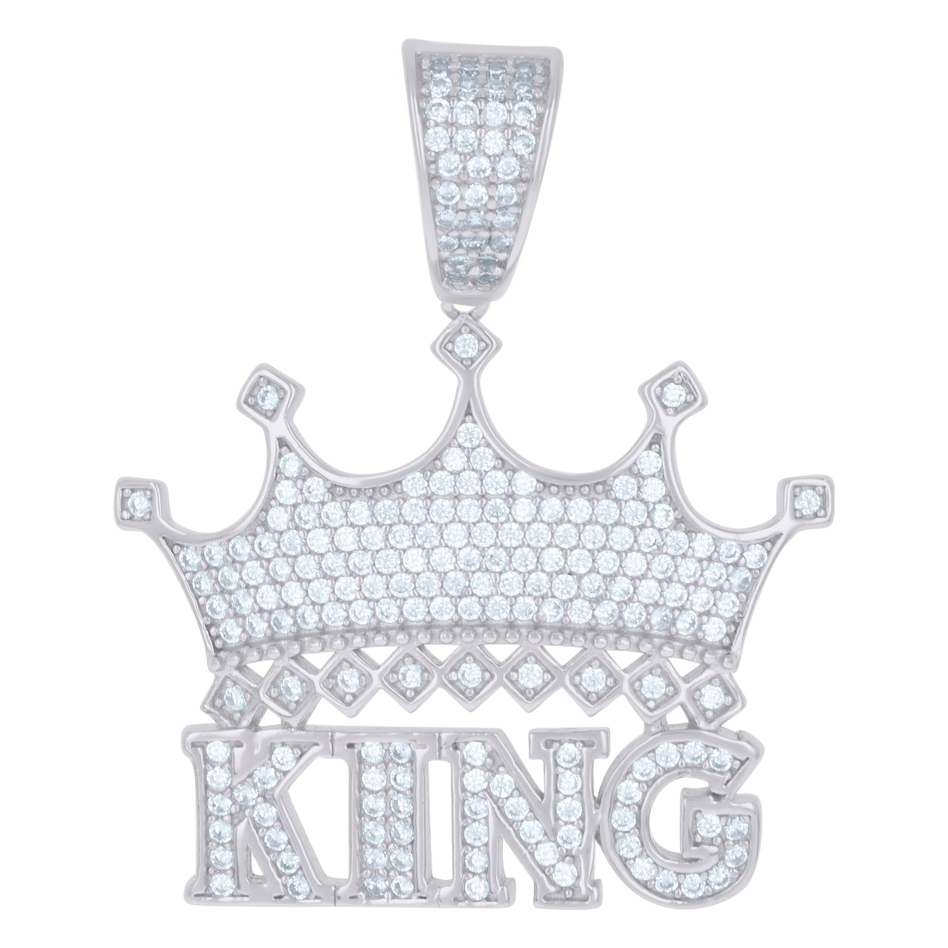 925 Sterling Silver Mens Cubic-Zirconia King Crown Fashion Charm Pendant